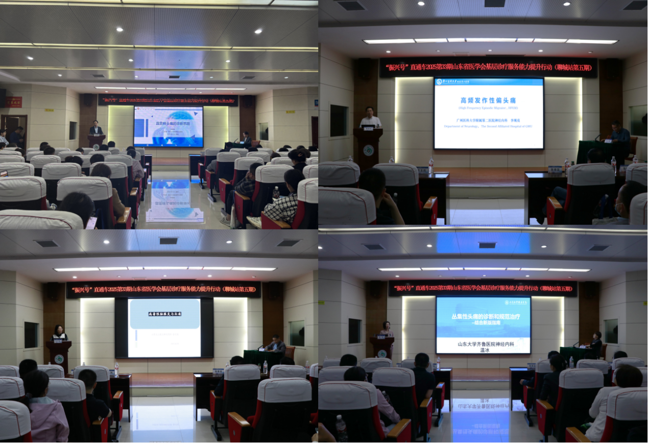 专题培训环节,山东第一医科大学附属省立医院神经内科主任医师陈春富、广州医科大学附属第二医院头痛中心主任医师李现亮、山东第一医科大学附属省立医院神经内科主任医师张付生、山东大学齐鲁医院神经内科副主任医师温冰围绕头痛病诊疗,分别以《霹雳样头痛的诊断思路高频发作性偏头痛病毒性脑膜炎与头痛丛集性头痛的诊治》为题进行精彩授课,活动现场学术交流氛围浓厚,与会人员普遍反馈受益匪浅。