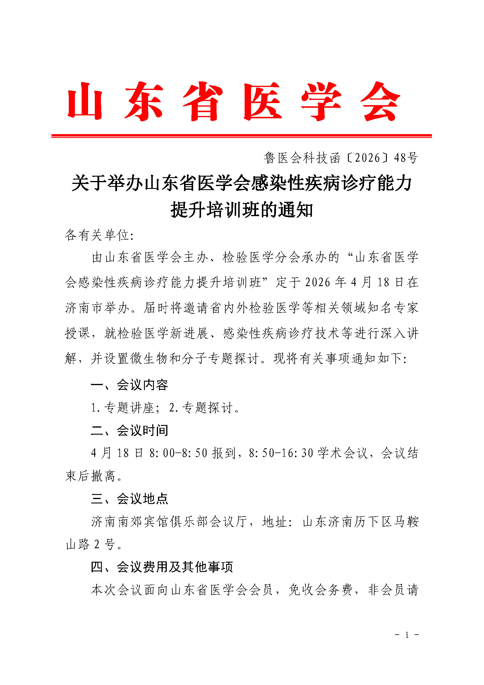 关于举办山东省医学会感染性疾病诊疗能力提升培训班的通知