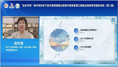 5月26日,医会学堂——“新评审标准下医疗质量精细化管理与质量管理工具的运用指导”专题培训班(第二期)通过线上直播形式如期召开。山东省医学会秘书长张林参加开班式并致辞,浙江大学附属第一医院(浙江省第一医院)质量管理部主任、国家卫生健康委员会首批医院评审专家赵彩莲和国家卫生健康委医院管理研究所特聘专家、医疗质量管理专家智库专家李西英作精彩专题讲座。