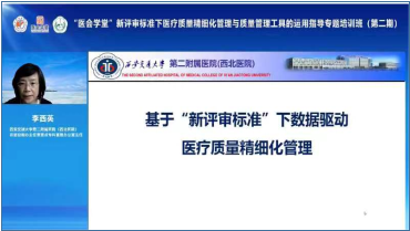 李西英围绕“数据驱动医疗质量精细化管理”,结合新形势医院评审工作目标、2020版评审标准的特点及剖析、数据驱动评审标准常态化管理、评审标准有效落实的路径等课题带来《基于“新评审标准”下数据驱动医疗质量精细化管理》的精彩讲座。