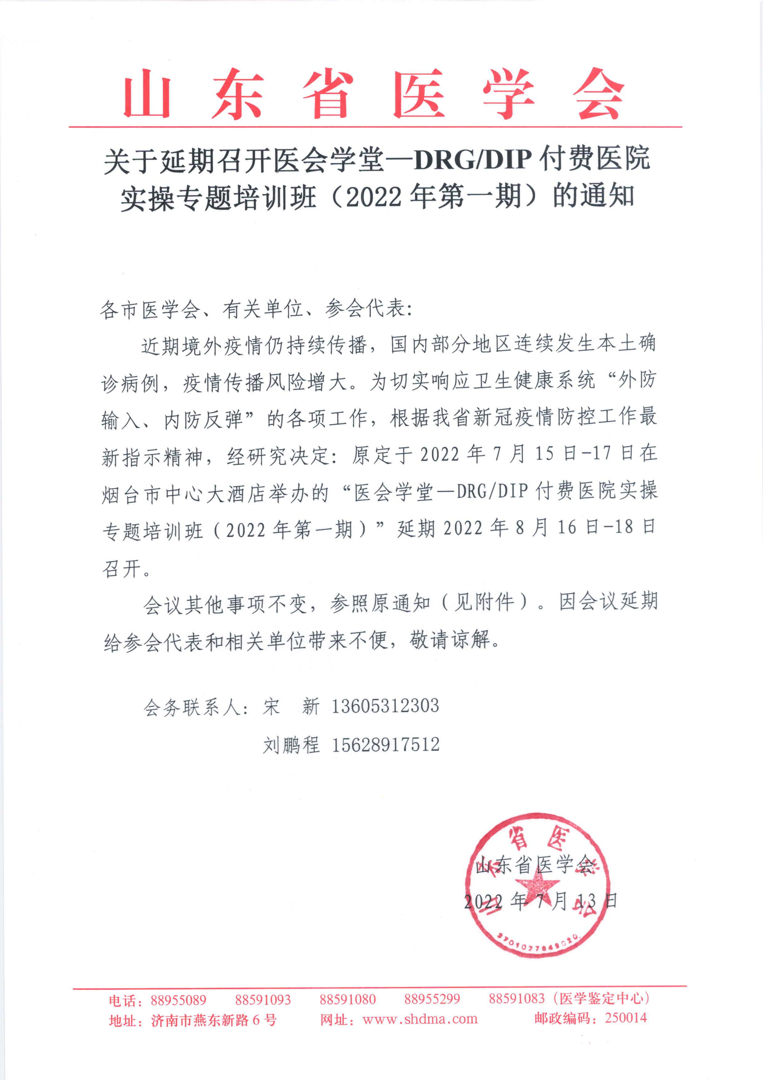 关于延期召开医会学堂DRG/DIP付费医院实操专题培训班(2022年第一期)的通知