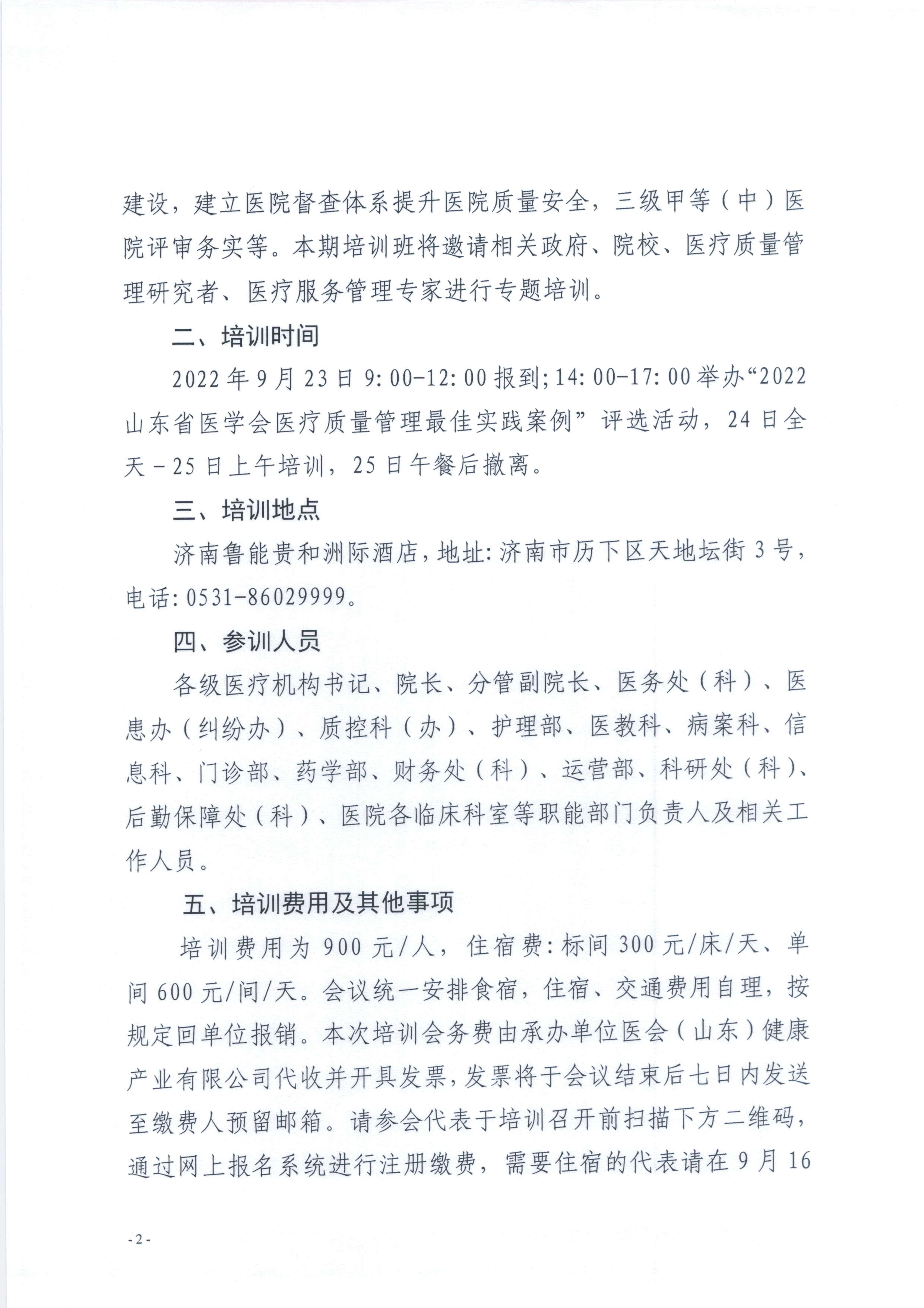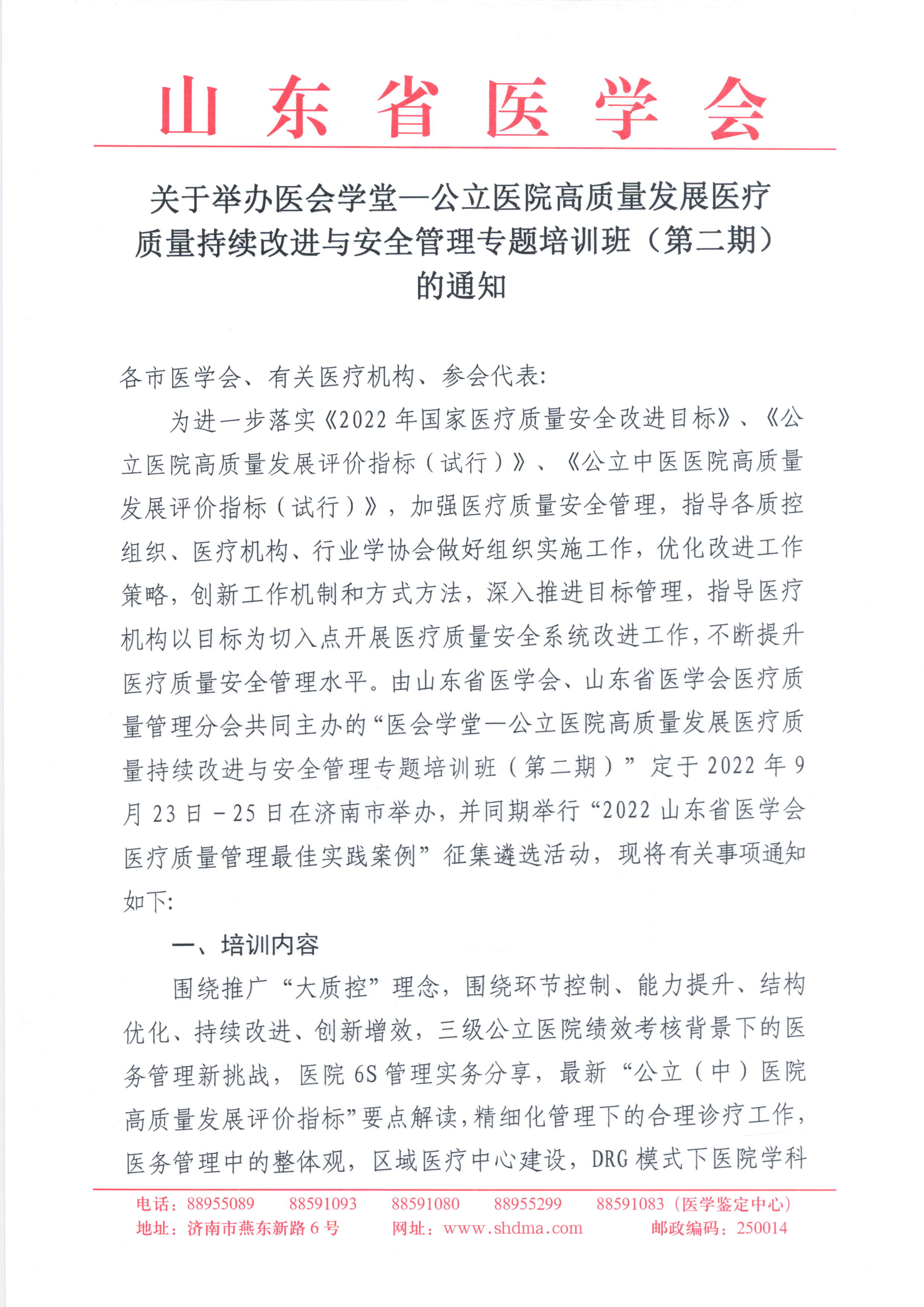 关于举办医会学堂一公立医院高质量发展医疗质量持续改进与安全管理专题培训班 (第二期) 的通知