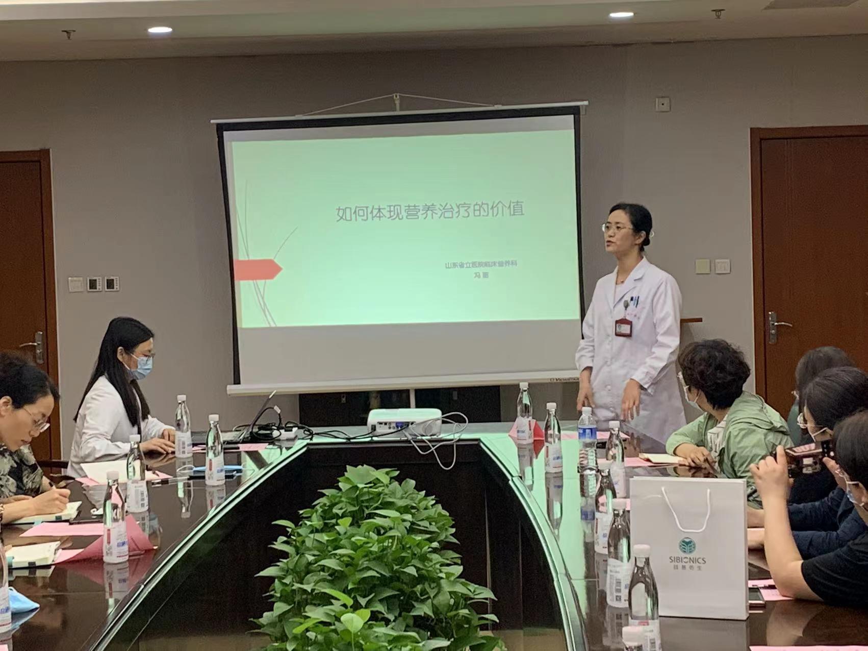 5月25日,培训班在山东第一医科大学附属省立医院中心院区举行。山东省医学会临床营养学分会主任委员、山东第一医科大学附属省立医院临床营养科主任冯丽结合工作实际情况为大家讲述了“如何体现营养治疗的价值”,讲解细致,深入浅出,引起了在场参会者的共鸣,现场掌声不断。