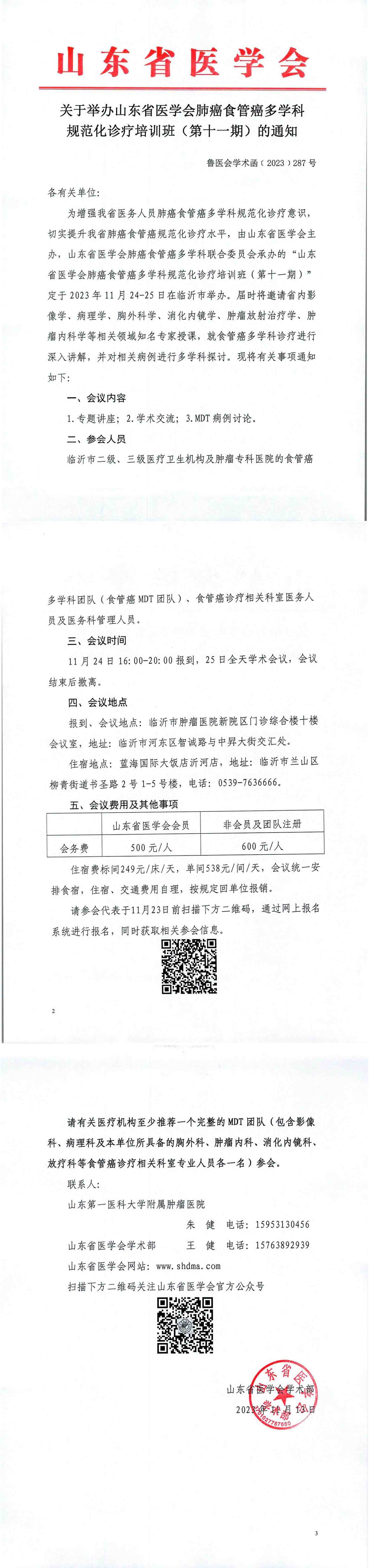 关于举办山东省医学会肺癌食管癌多学科规范化诊疗培训班(第十一期)的通知