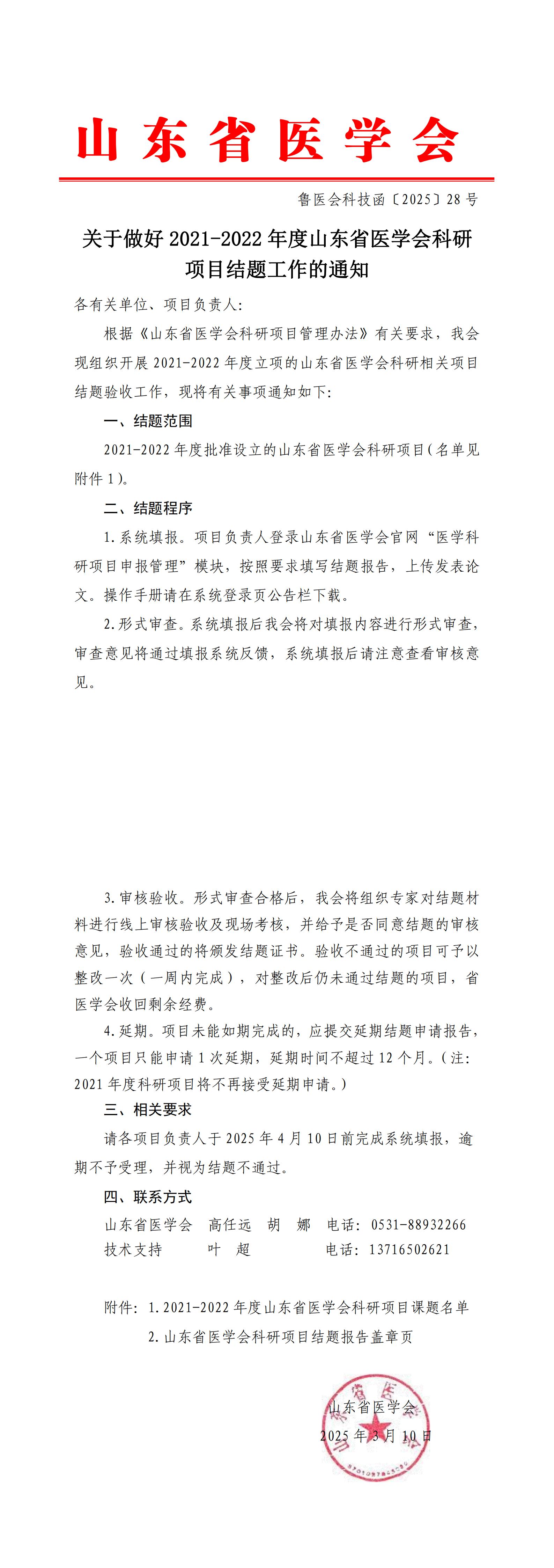 附件2:山东省医学会科研项目结题报告盖章页.doc