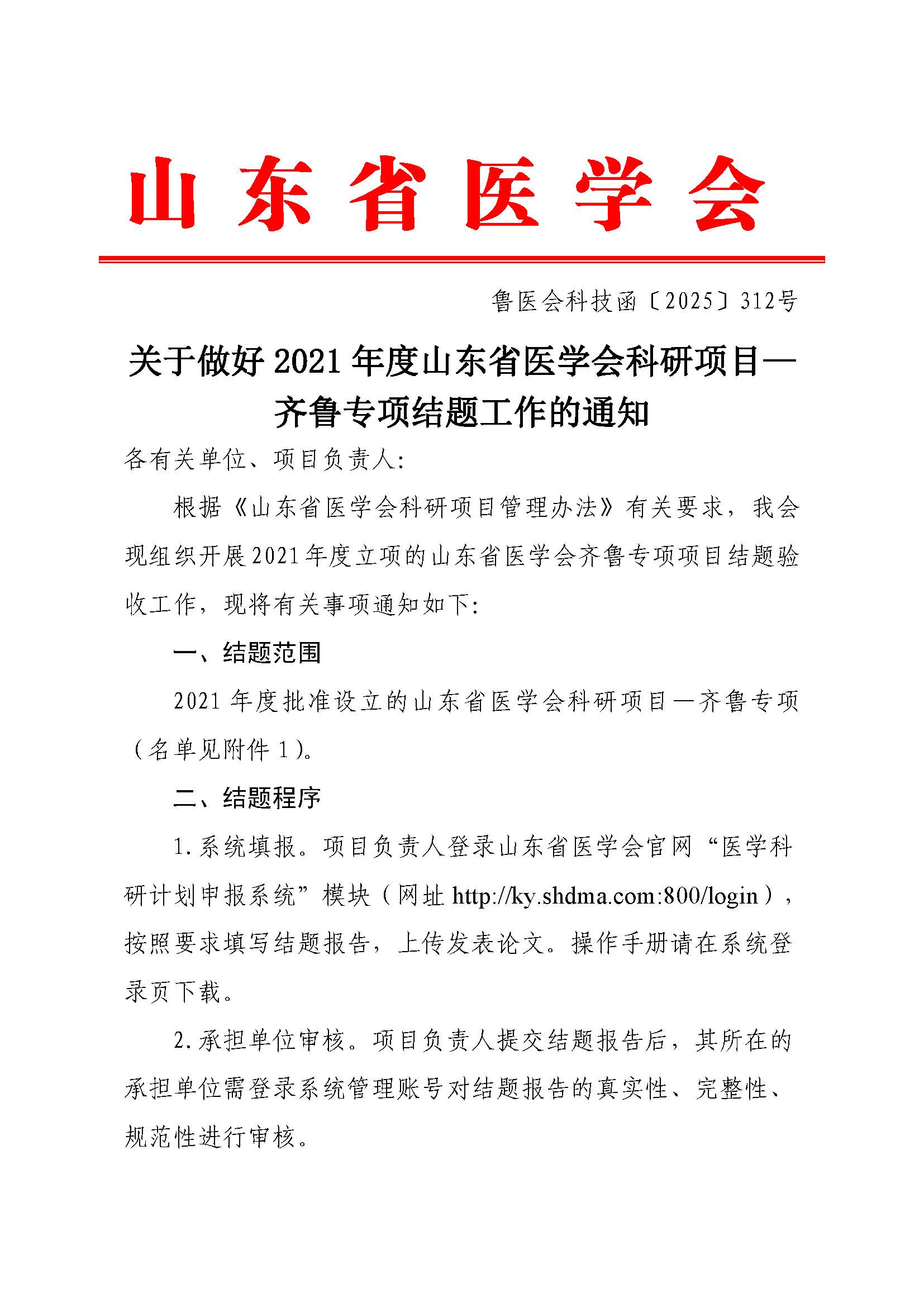 附件1.2021年度山东省医学会科研项目-齐鲁专项课题名单.xls