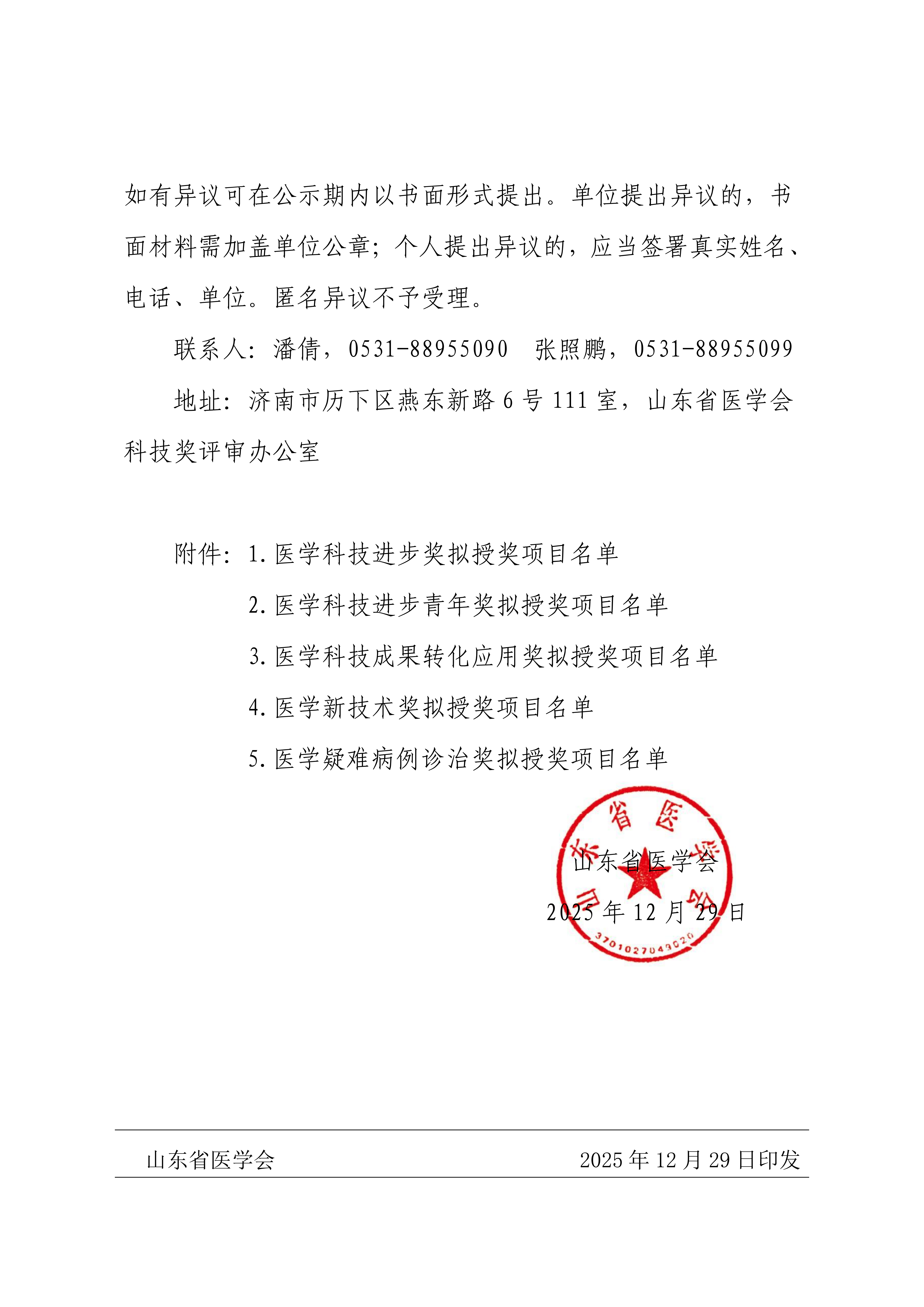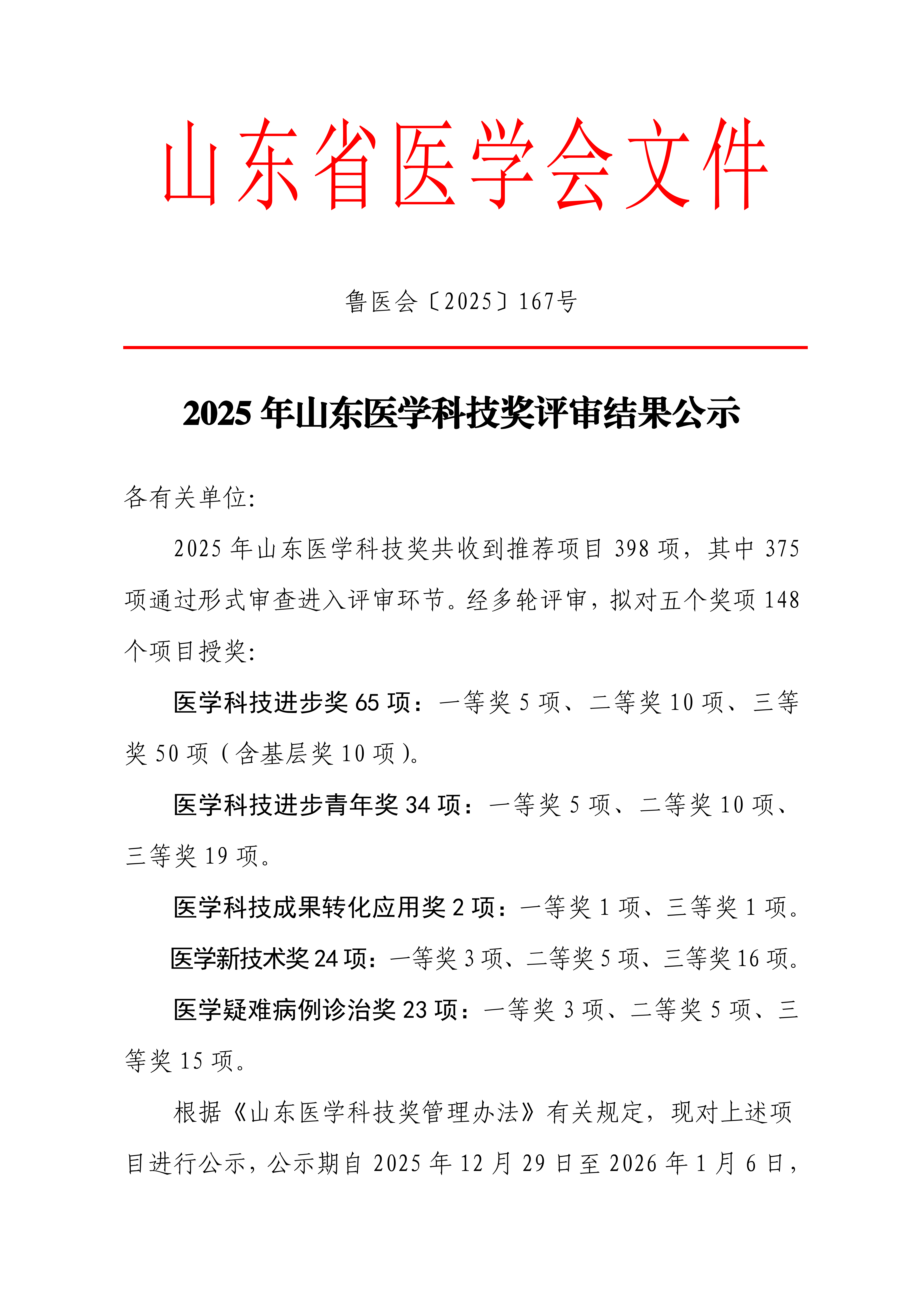 2025年山东医学科技奖评审结果公示