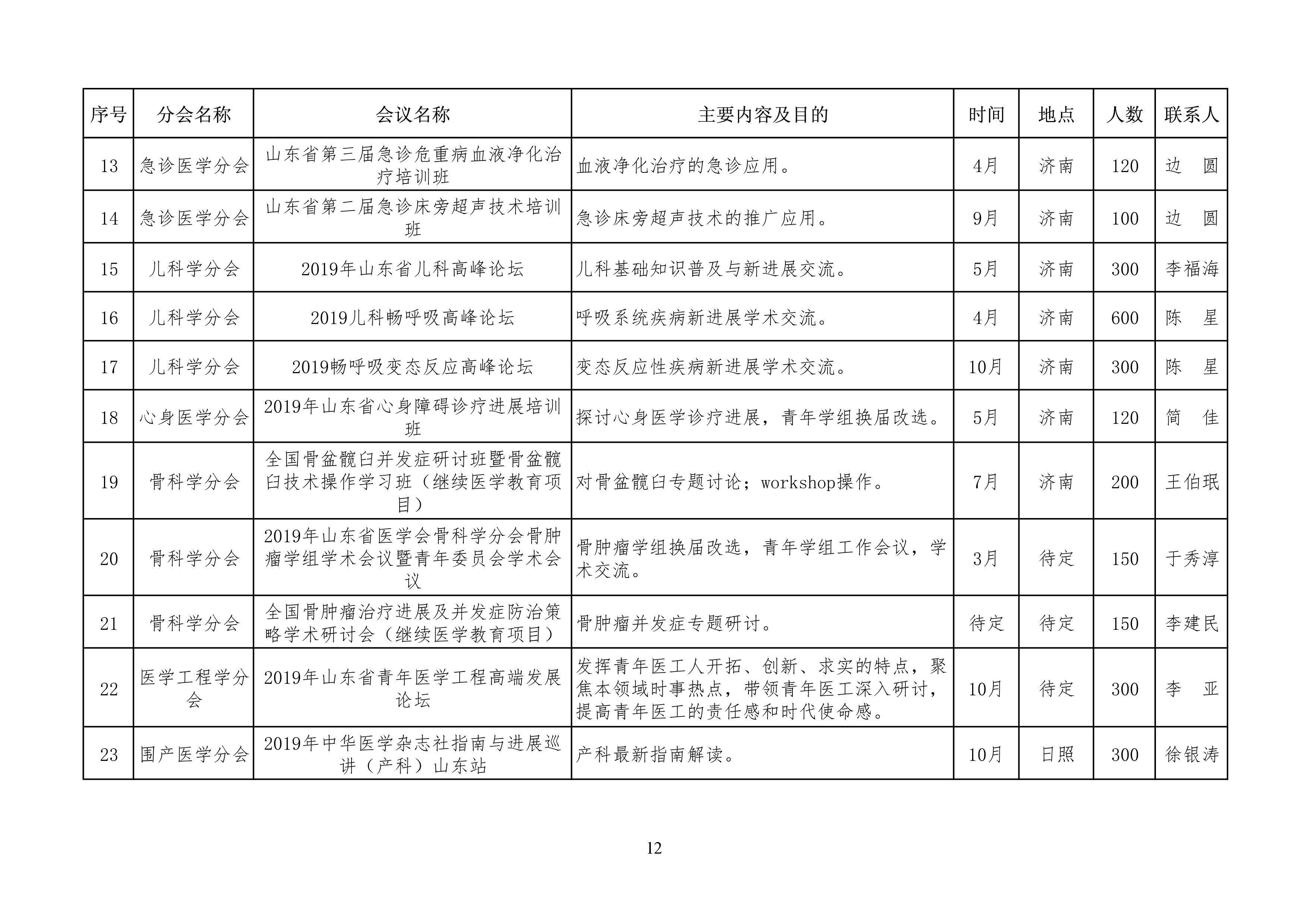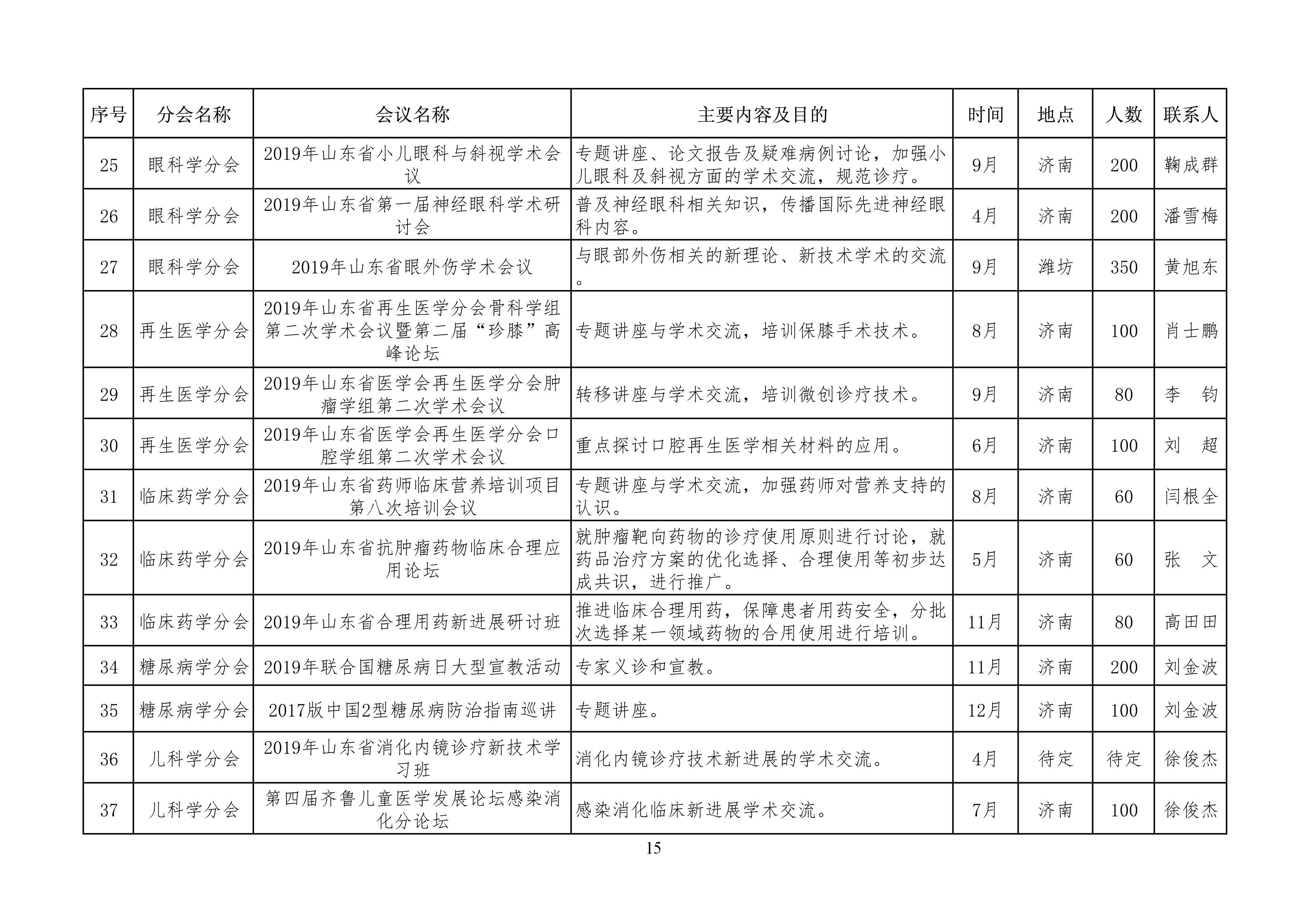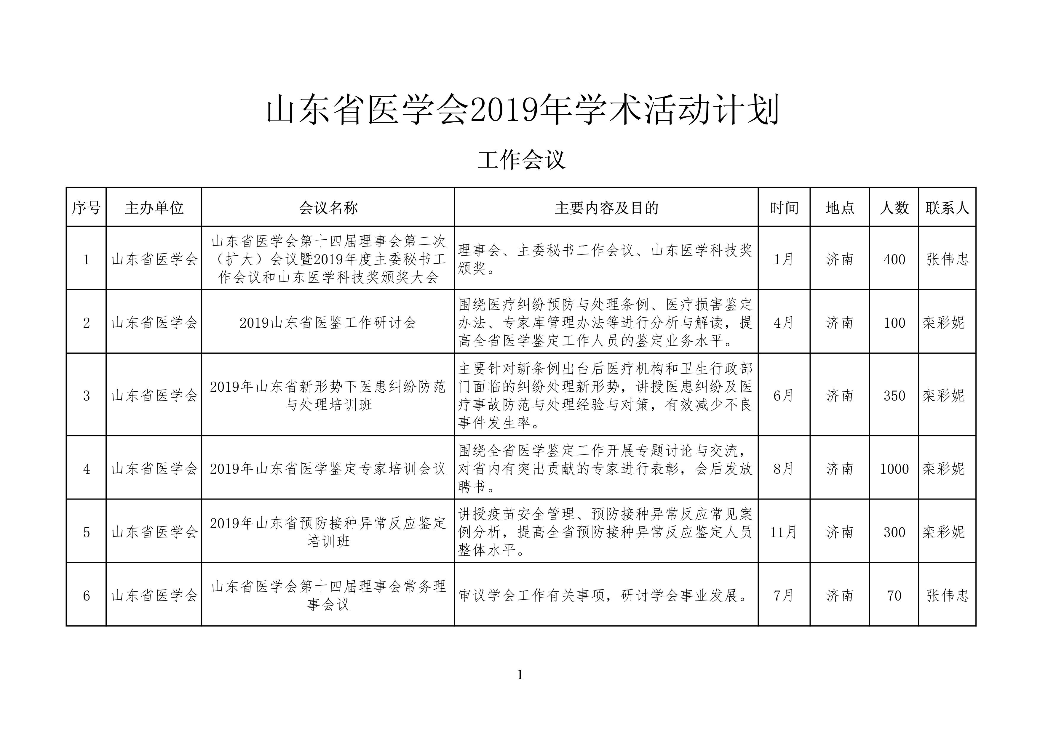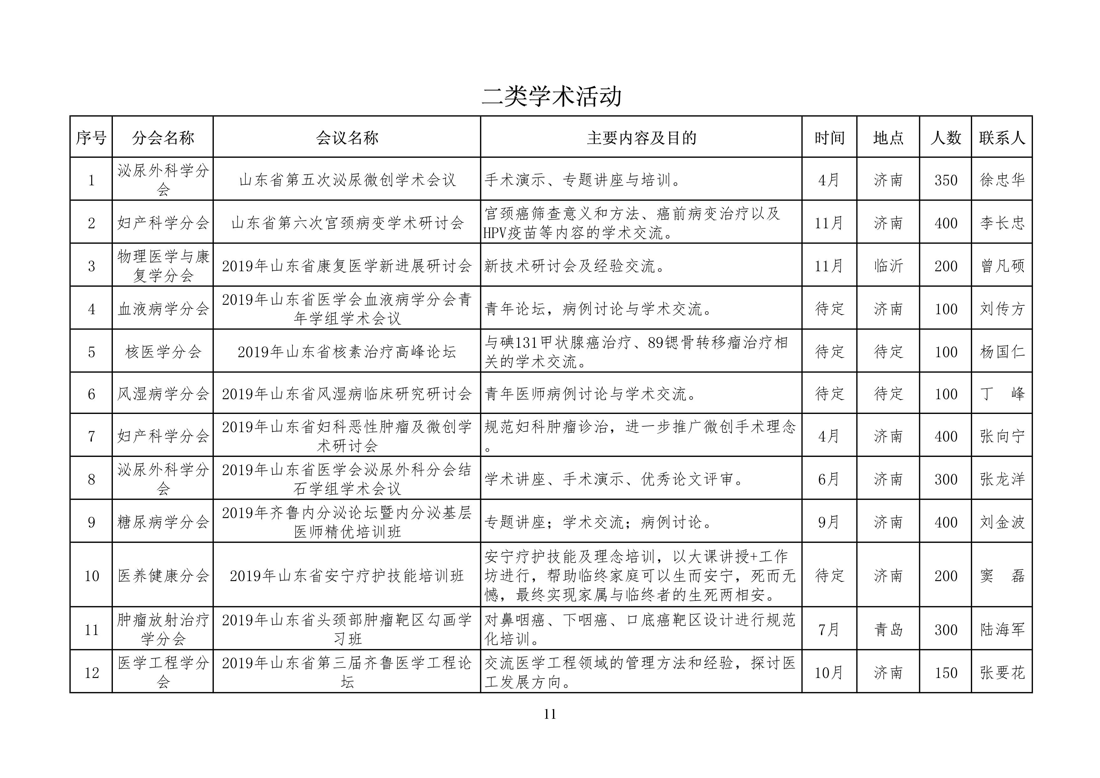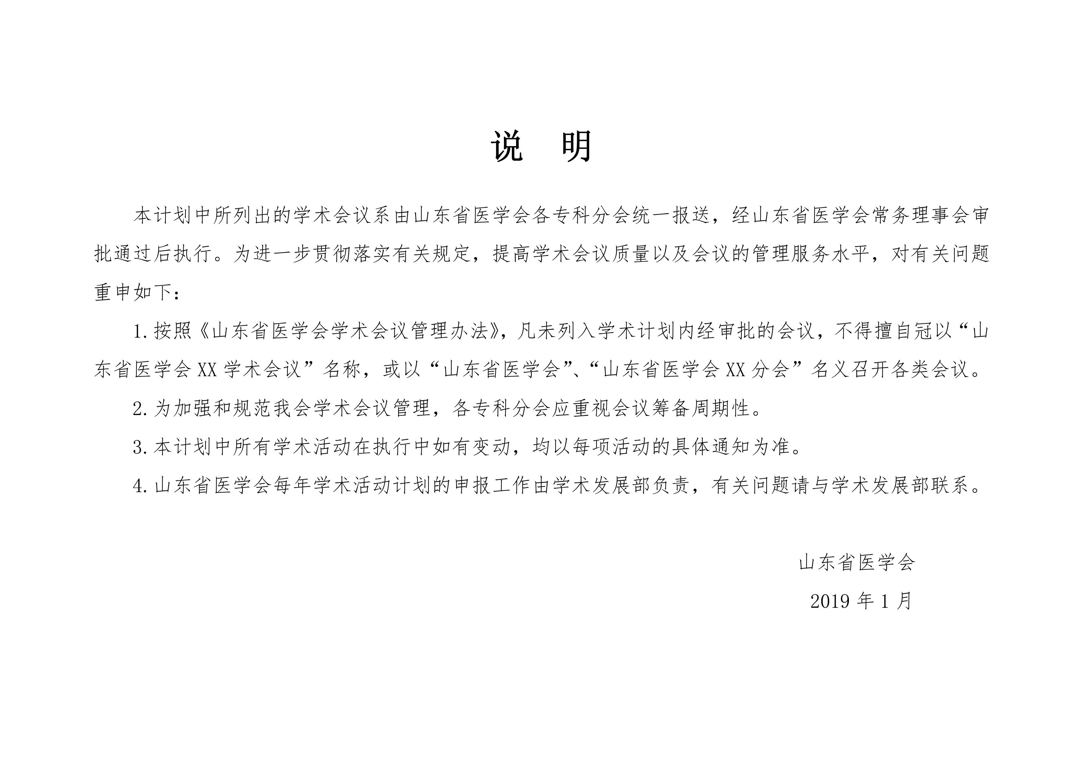 山东省医学会2019年学术活动计划