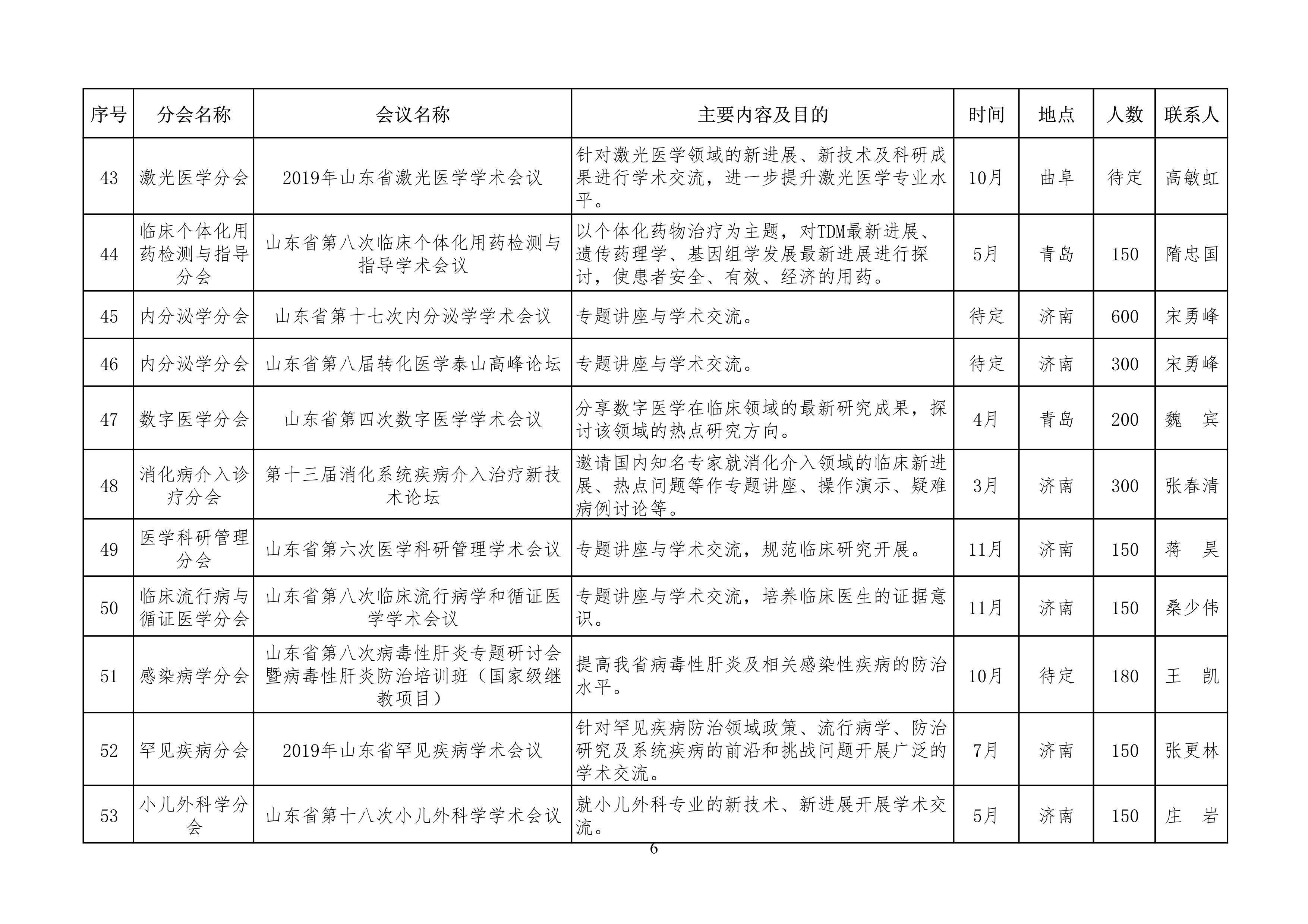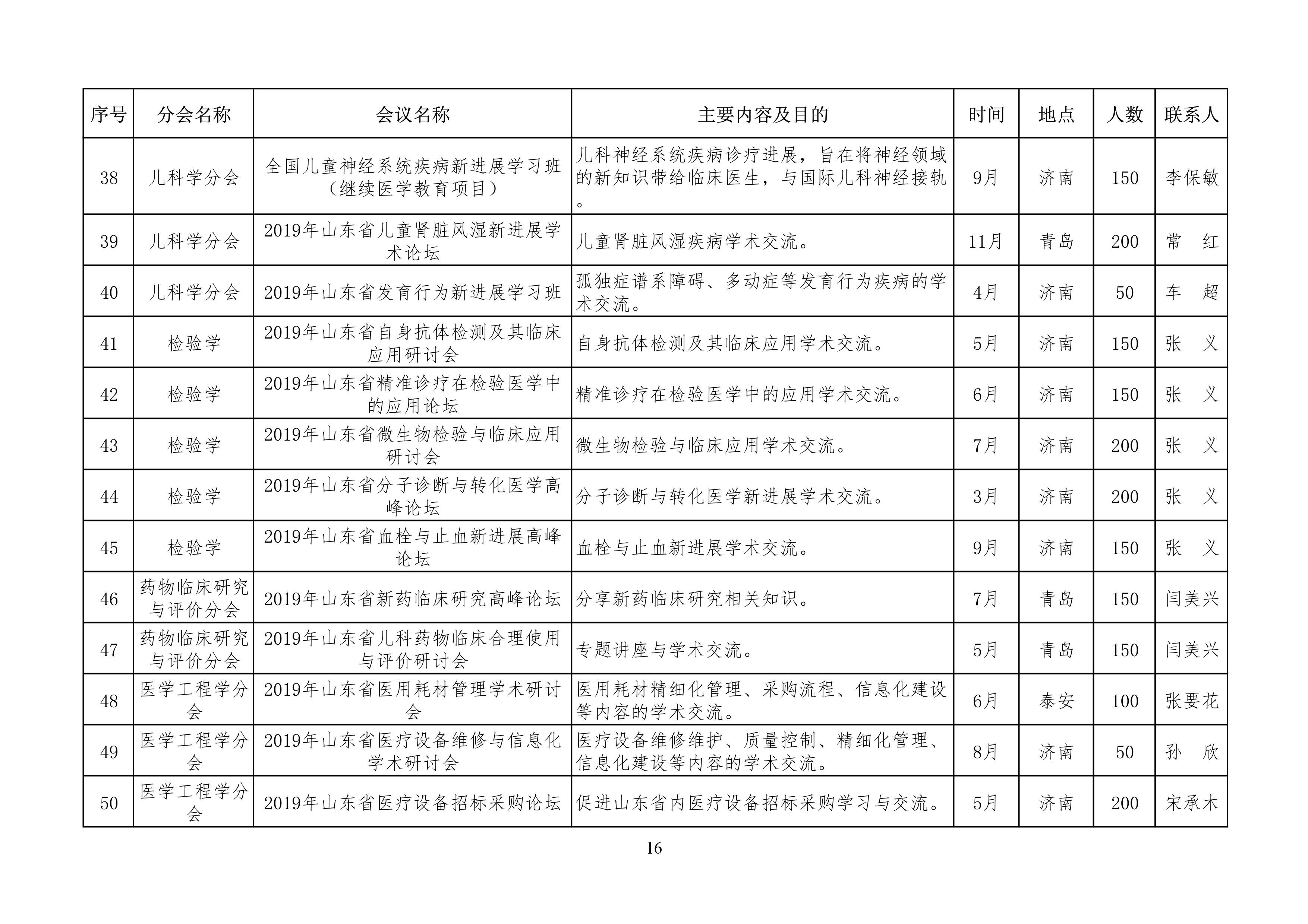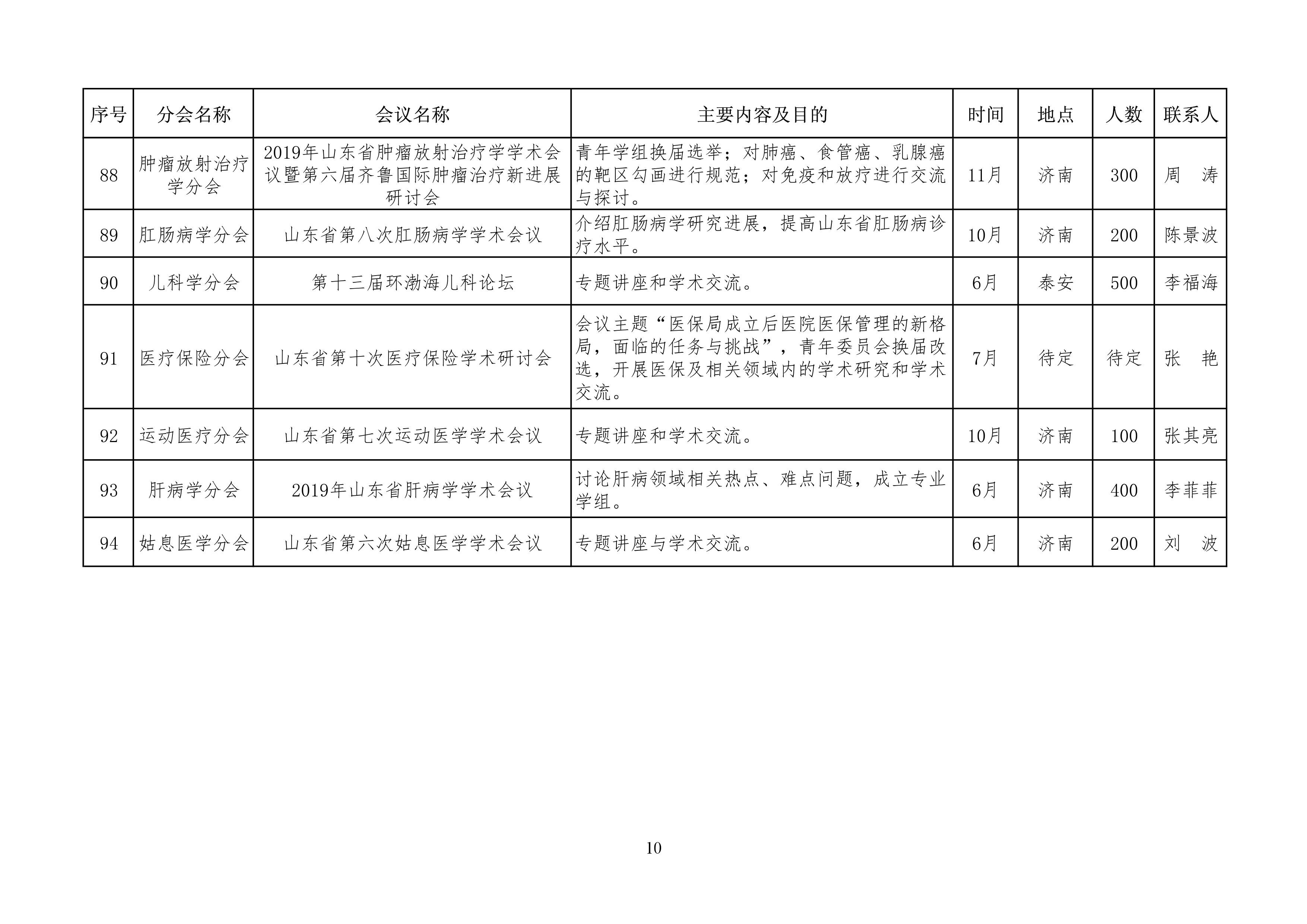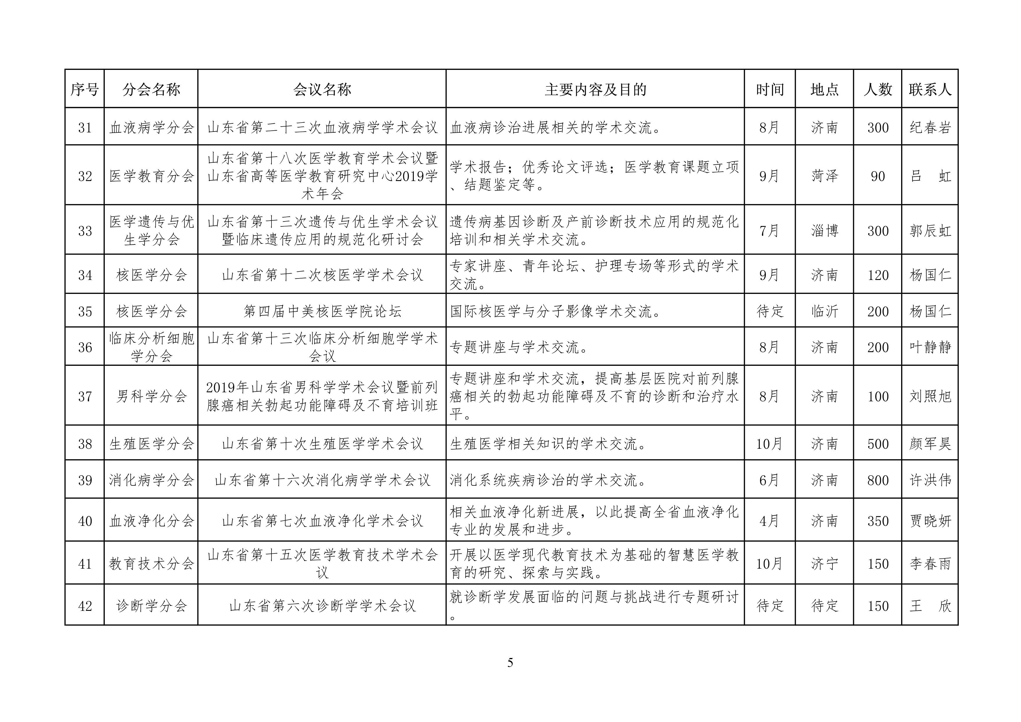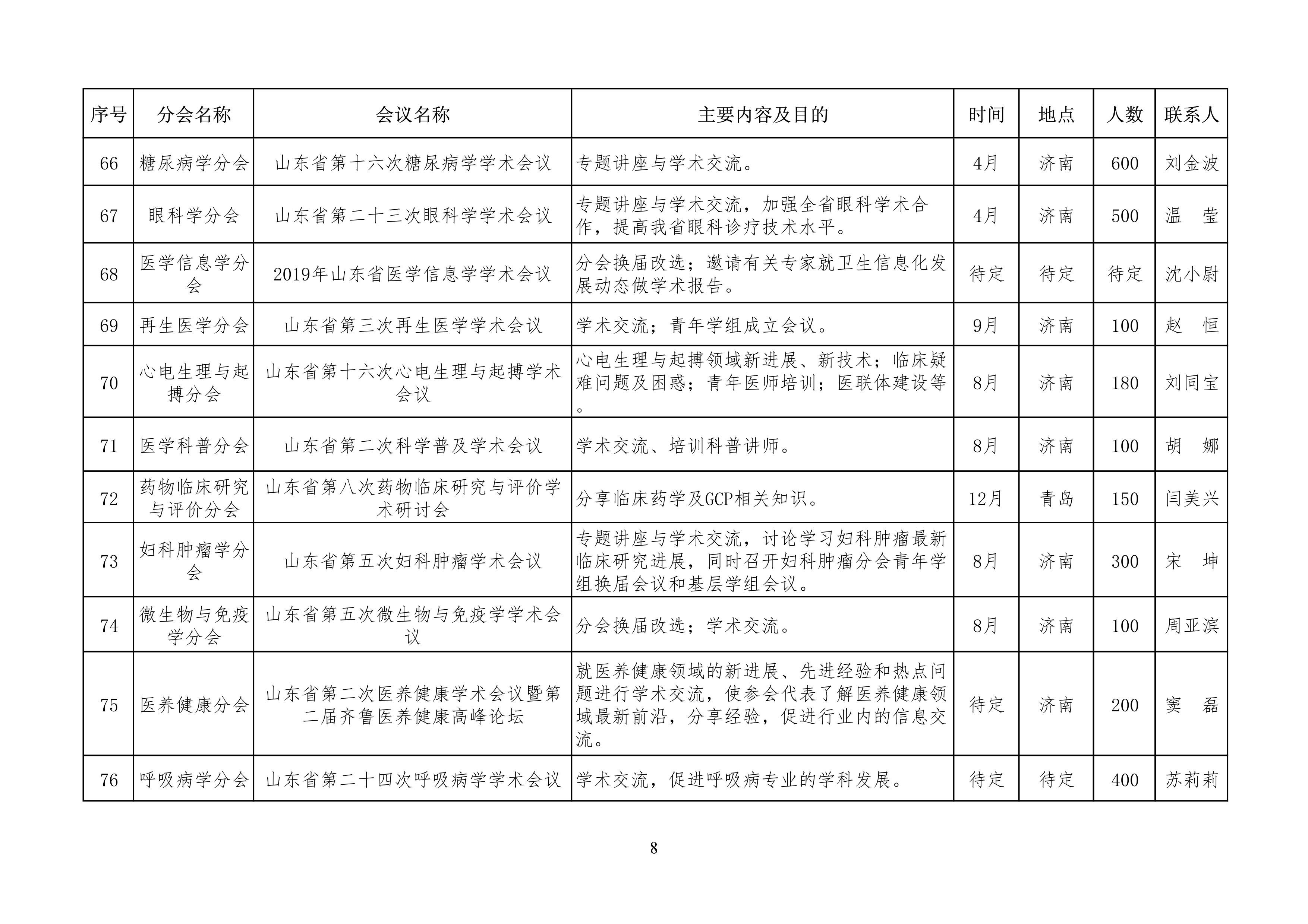 山东省医学会2019年学术活动计划
