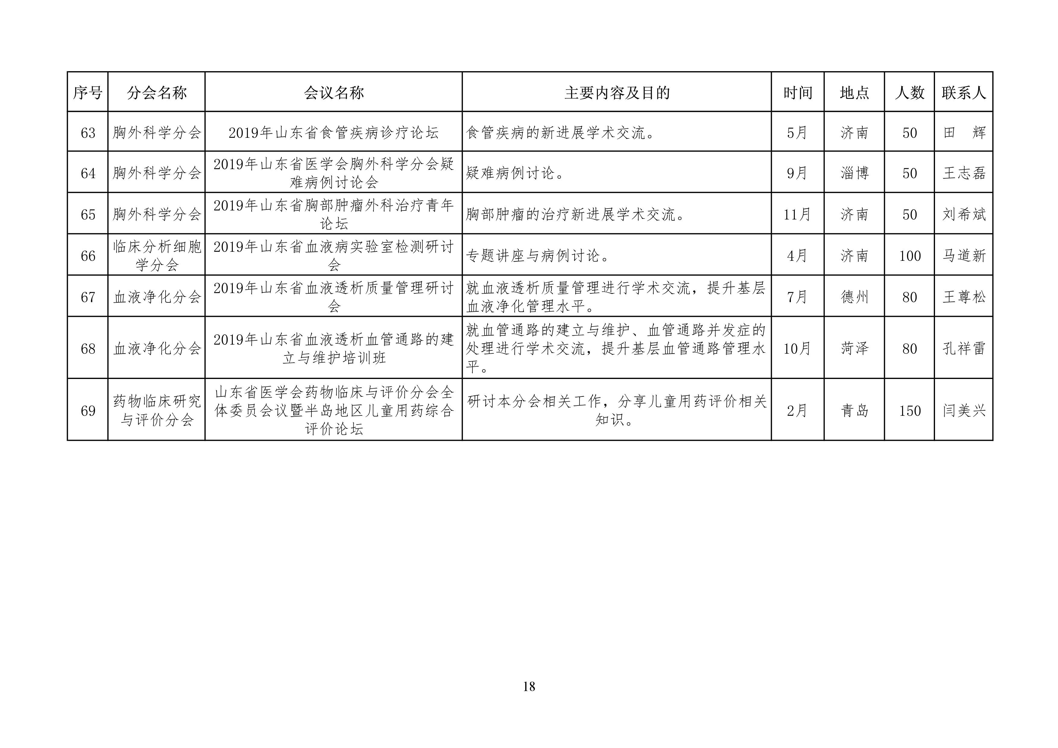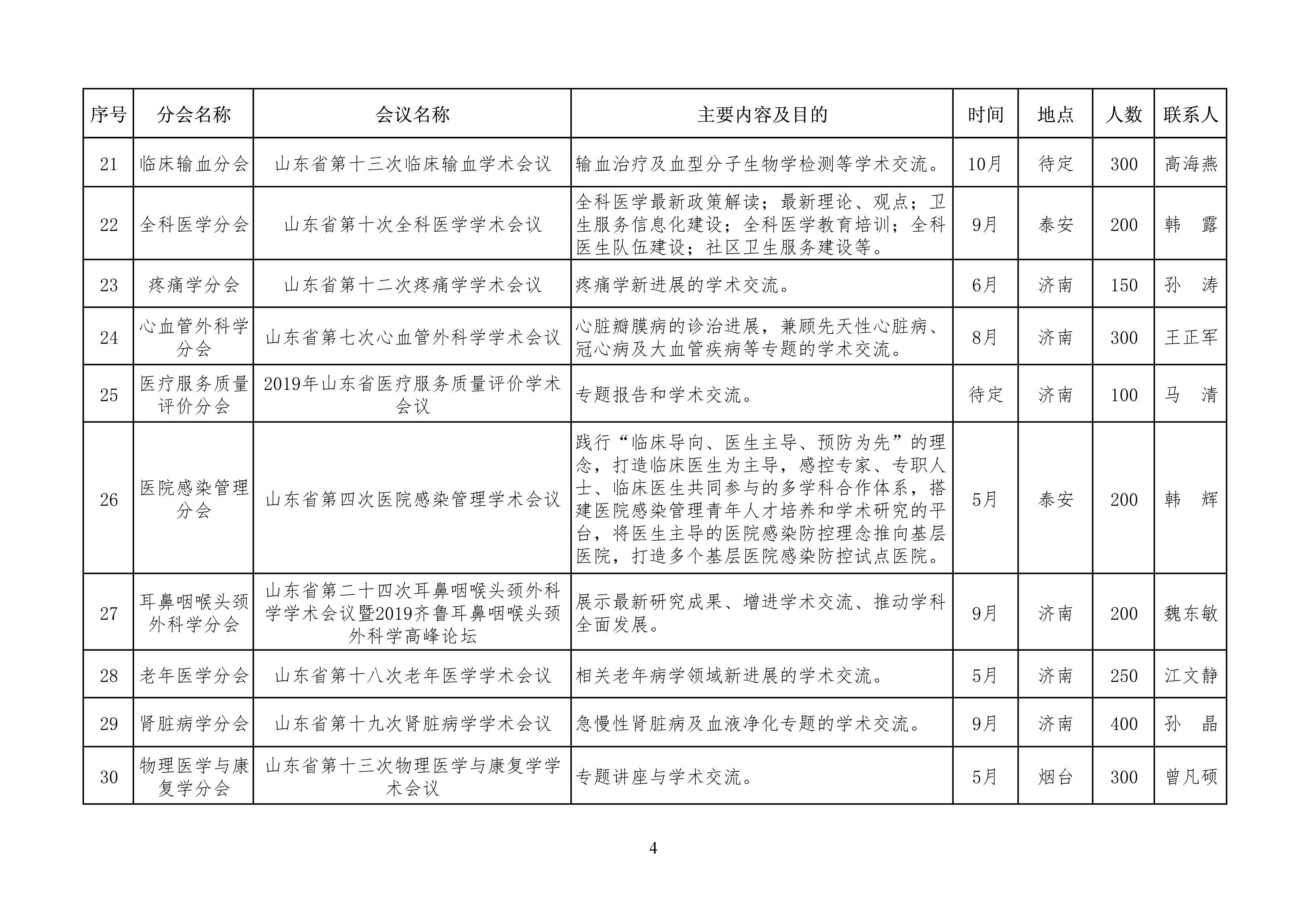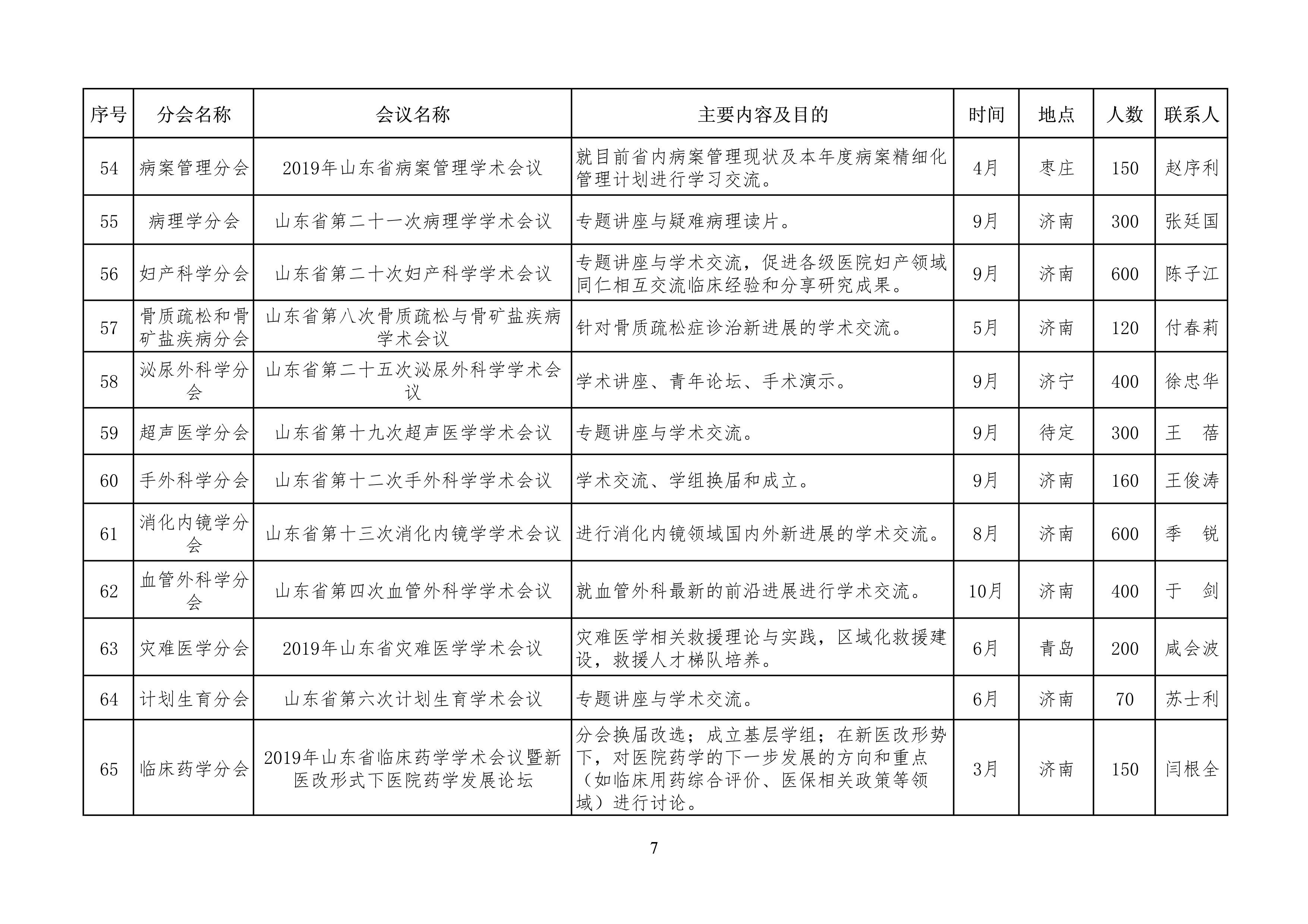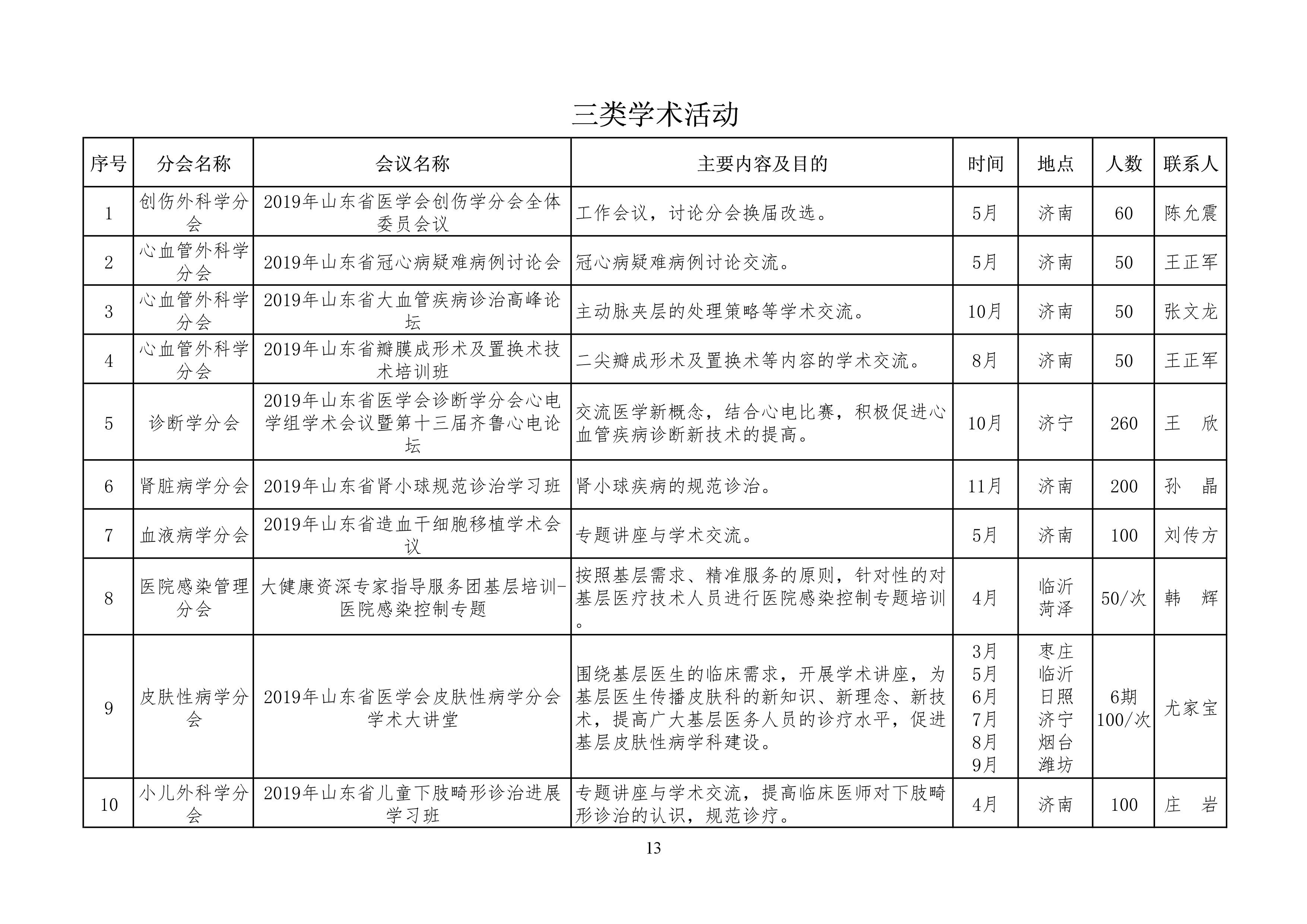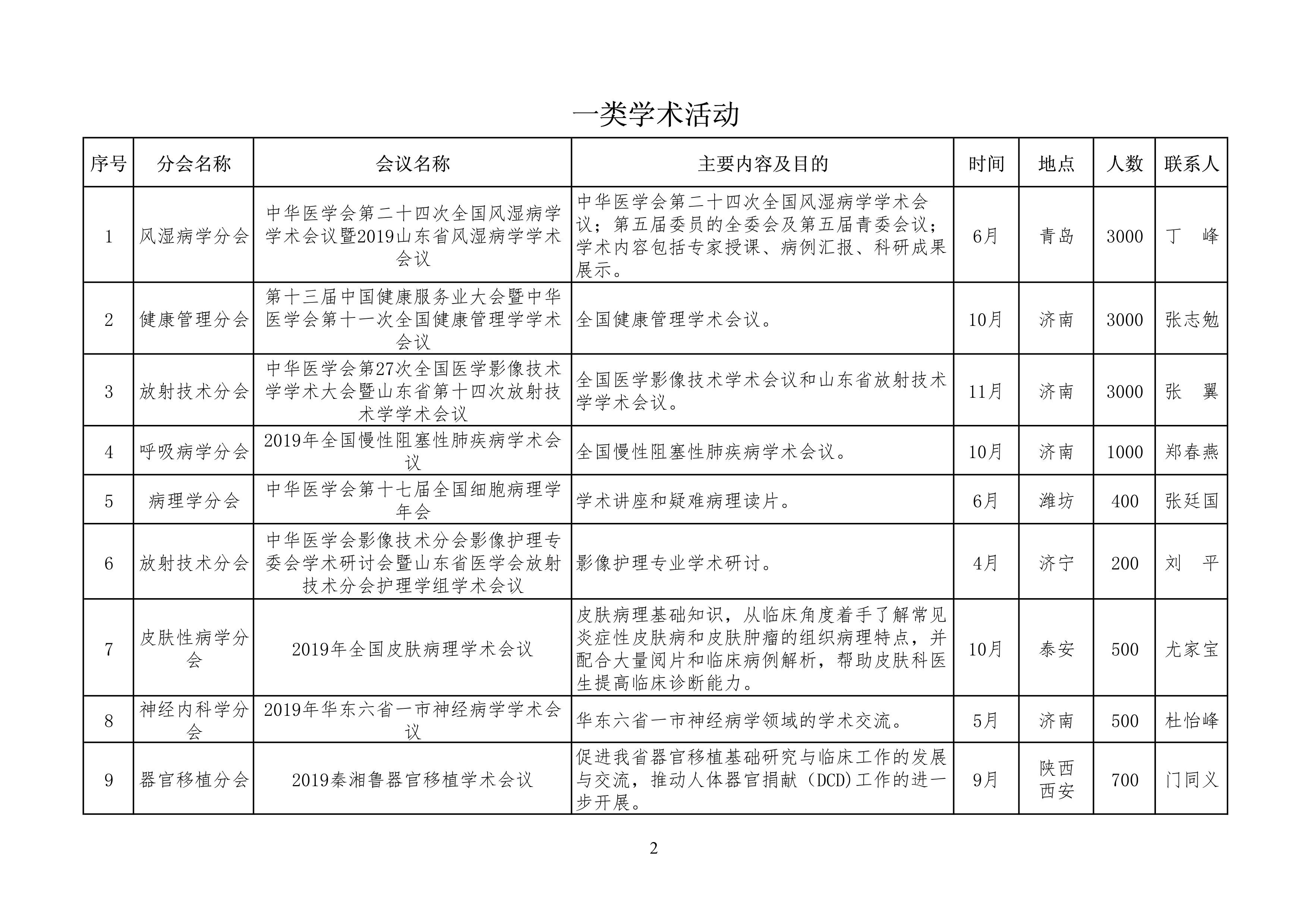 山东省医学会2019年学术活动计划