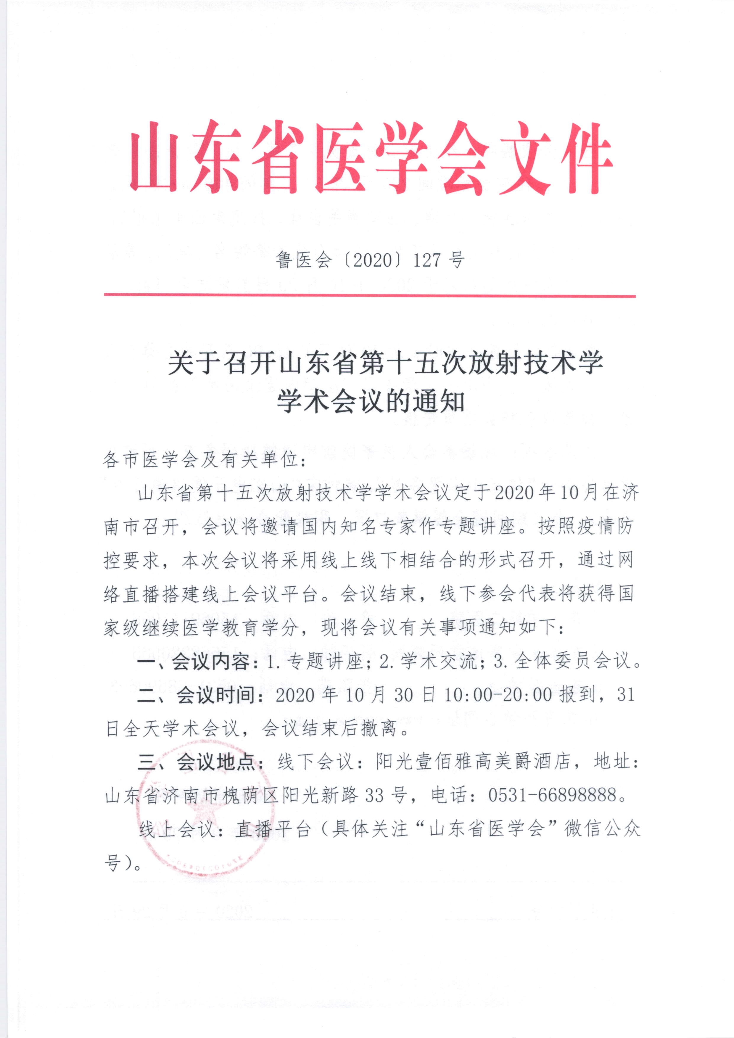 关于召开山东省第十五次放射技术学学术会议的通知