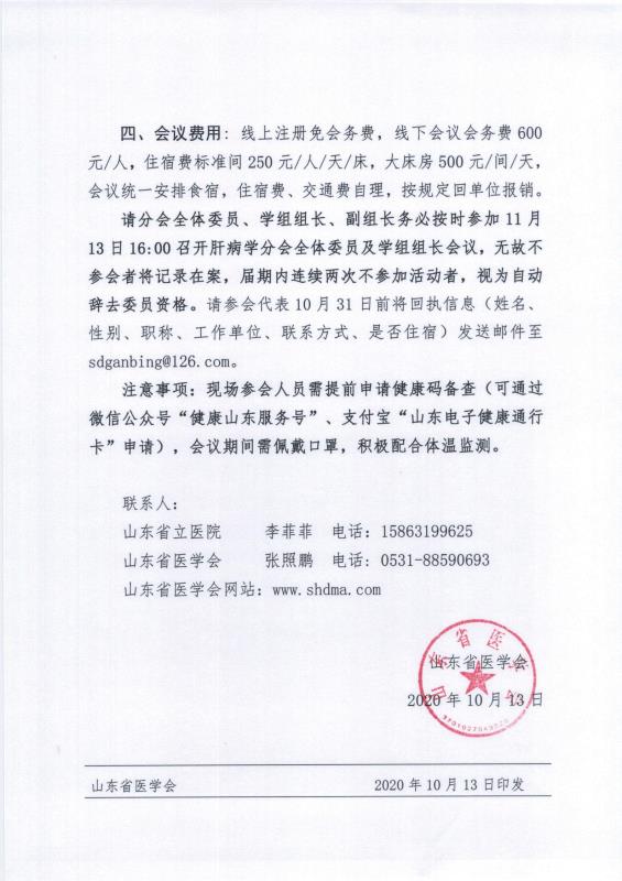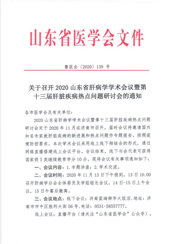 关于召开2020山东省肝病学学术会议暨第十三届肝脏疾病热点问题研讨会的通知