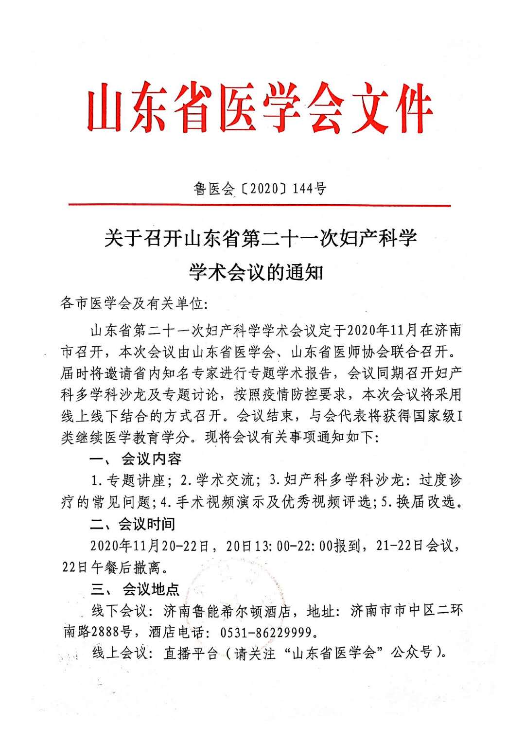 关于召开山东省第二十一次妇产科学学术会议的通知