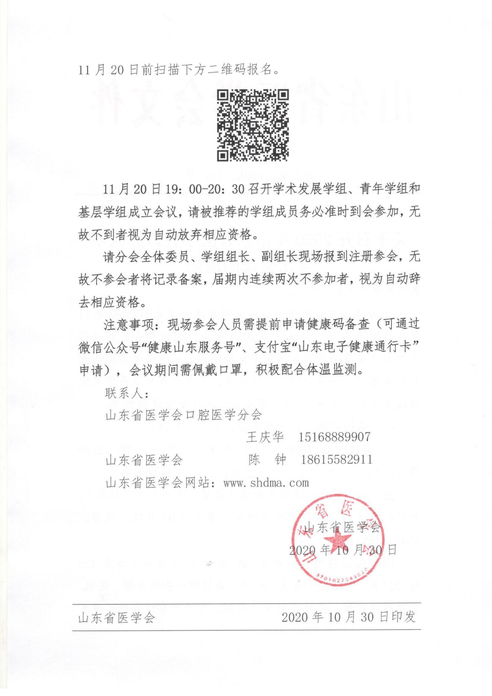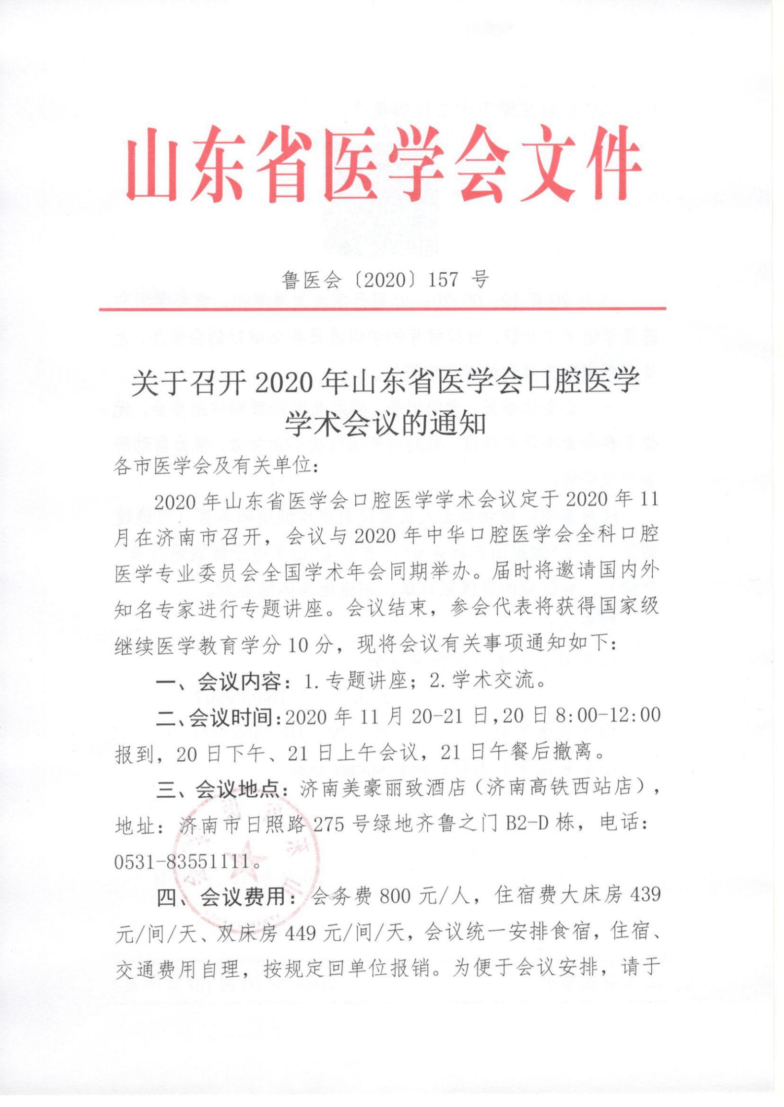 关于召开2020年山东省医学会口腔医学学术会议的通知