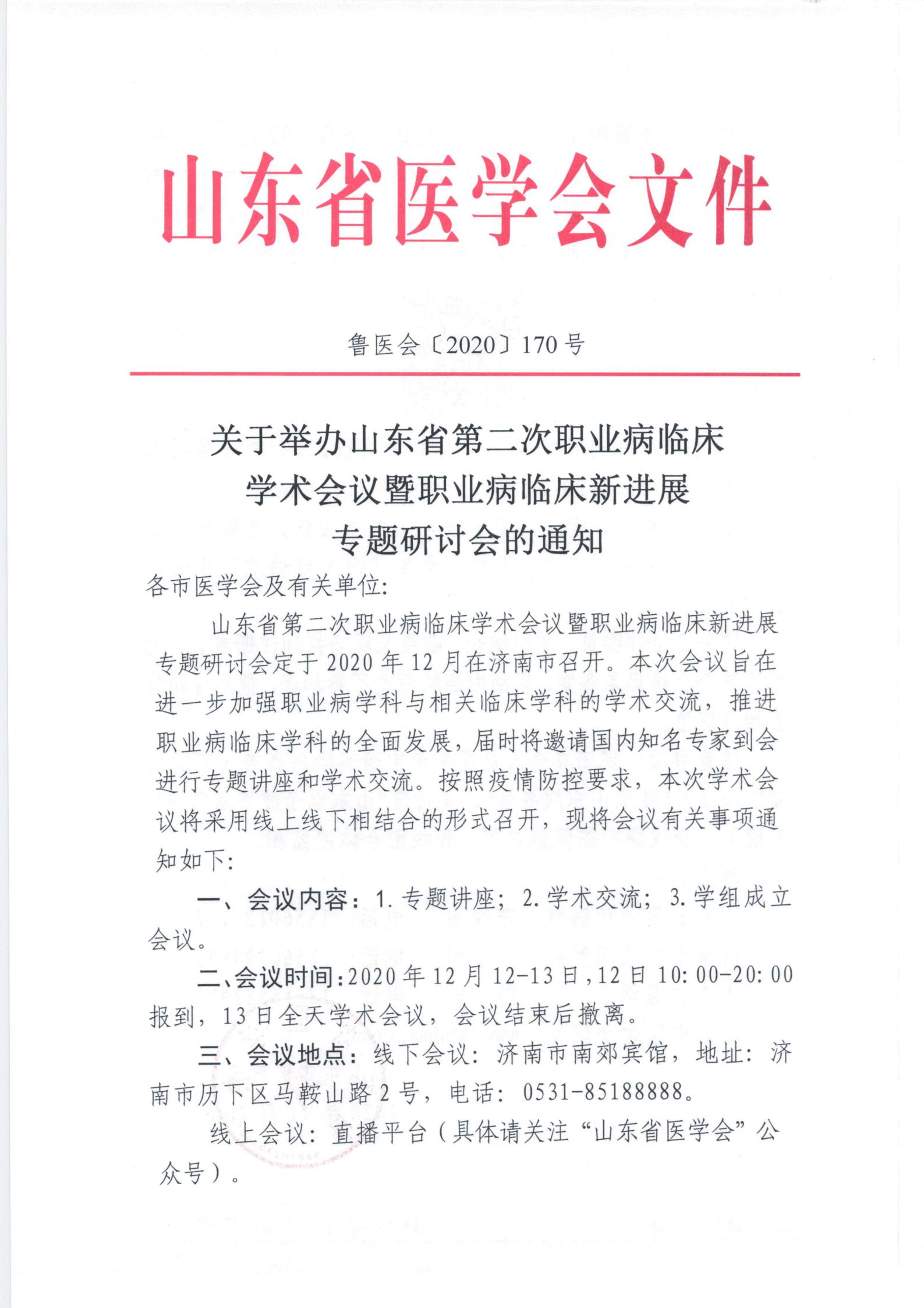 关于举办山东省第二次职业病临床学术会议暨职业病临床新进展专题研讨会的通知