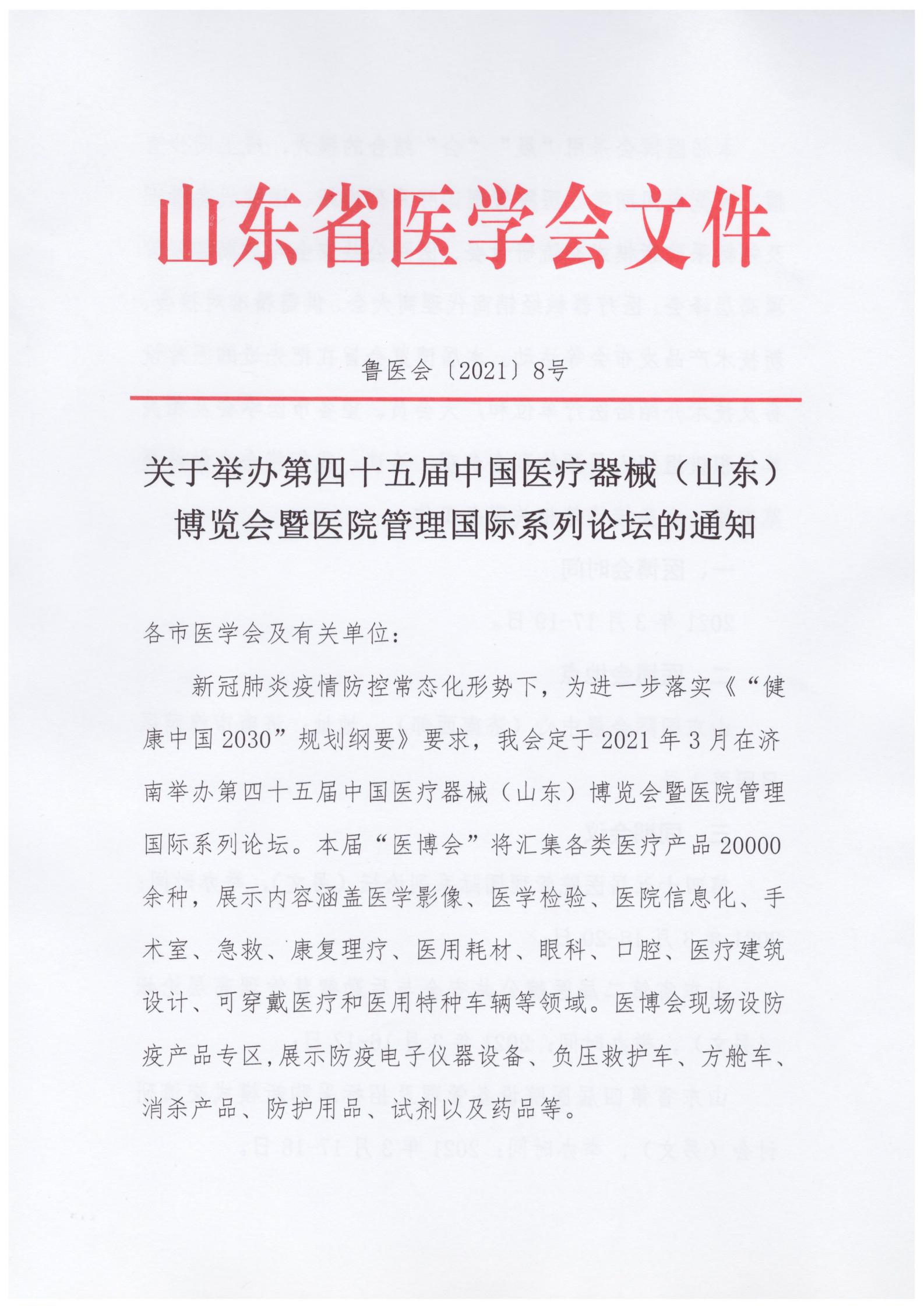 关于举办第四十五届中国医疗器械(山东)博览会暨医院管理国际系列论坛的通知