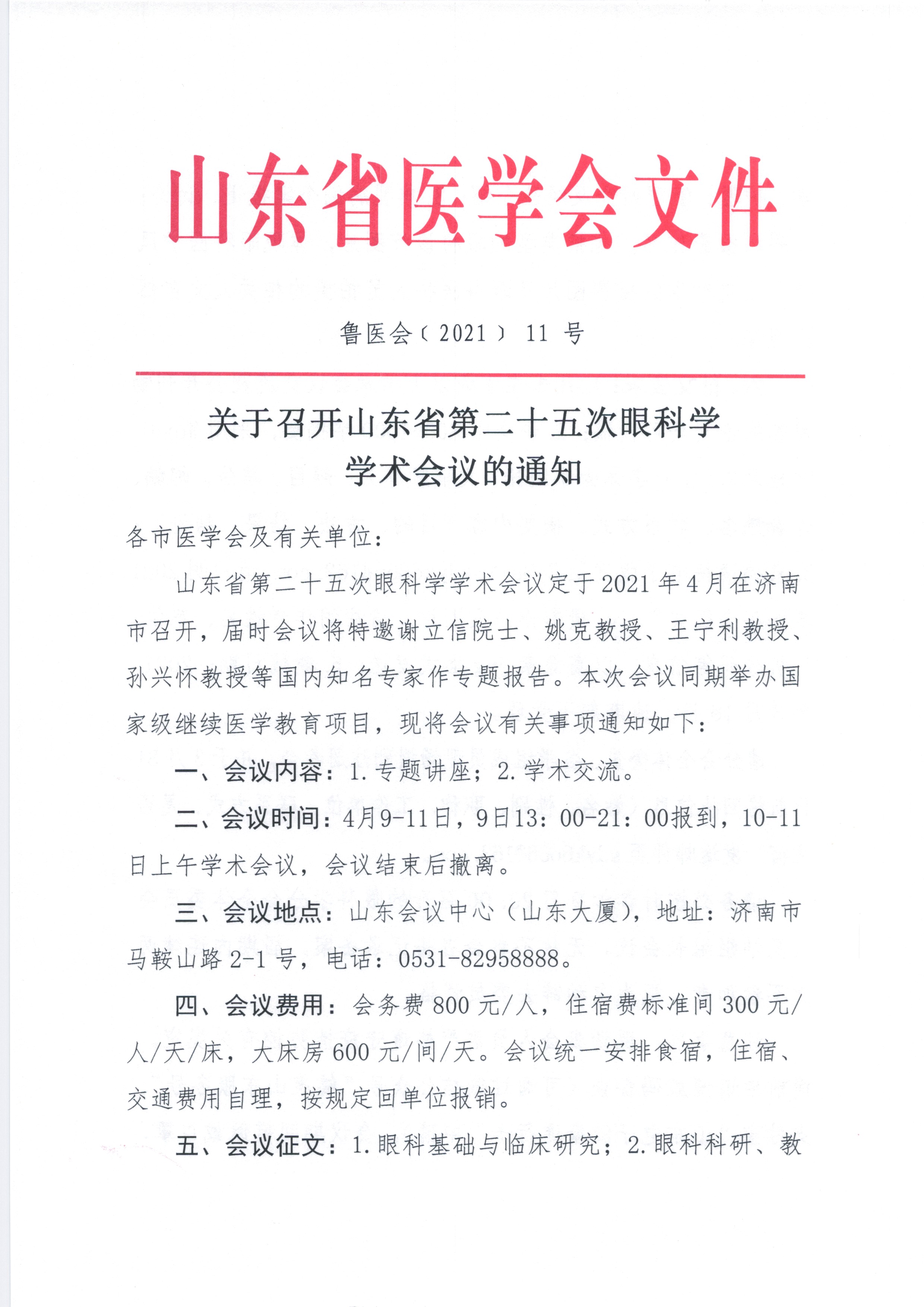 关于召开山东省第二十五次眼科学学术会议的通知