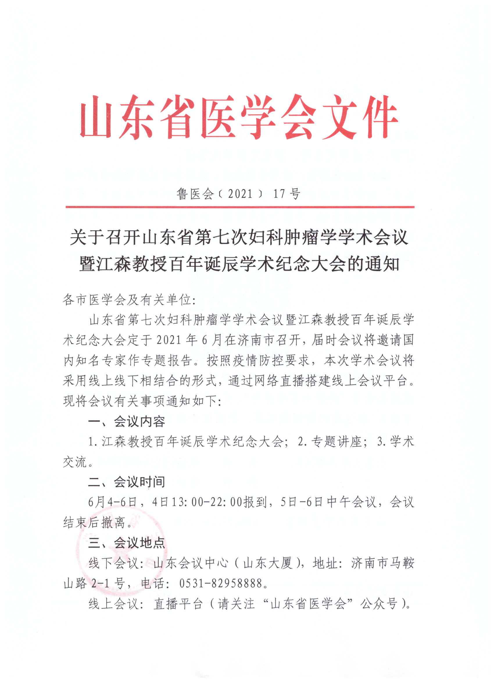 关于召开山东省第七次妇科肿瘤学学术会议暨江森教授百年诞辰学术纪念大会的通知