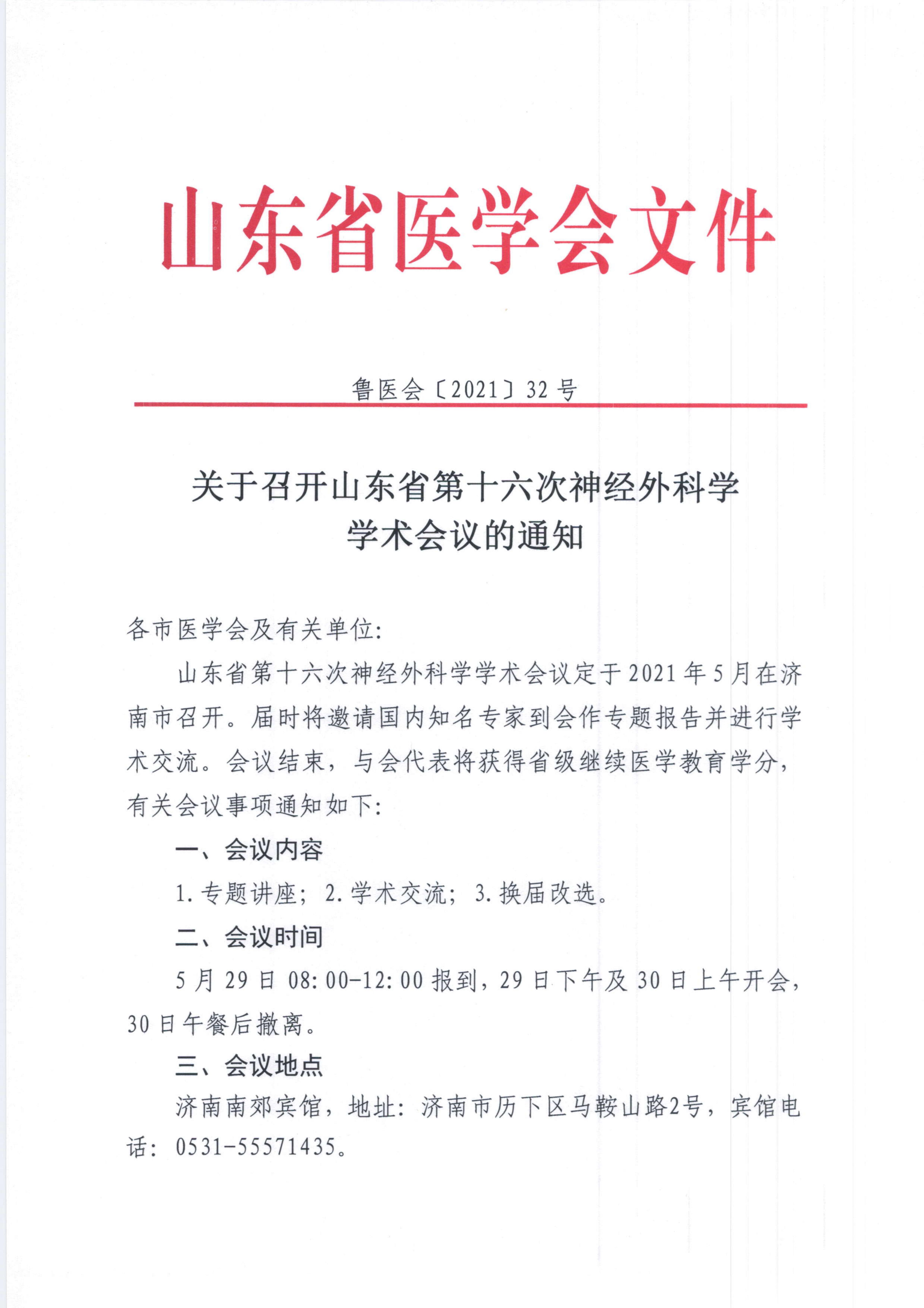 关于召开山东省第十六次神经外科学学术会议的通知