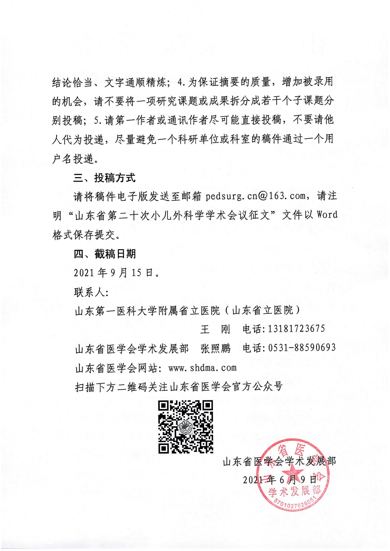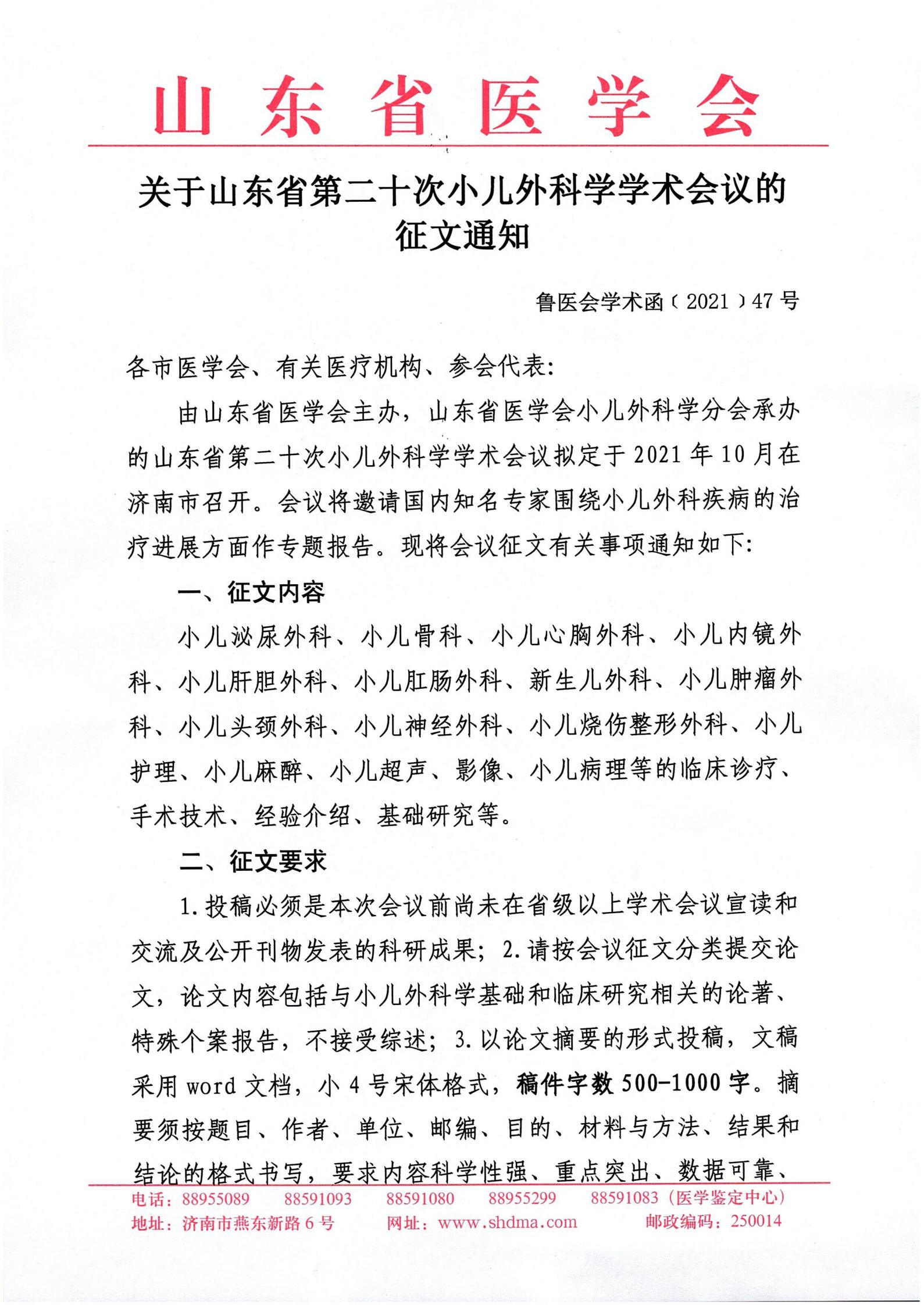 关于山东省第二十次小儿外科学学术会议的征文通知
