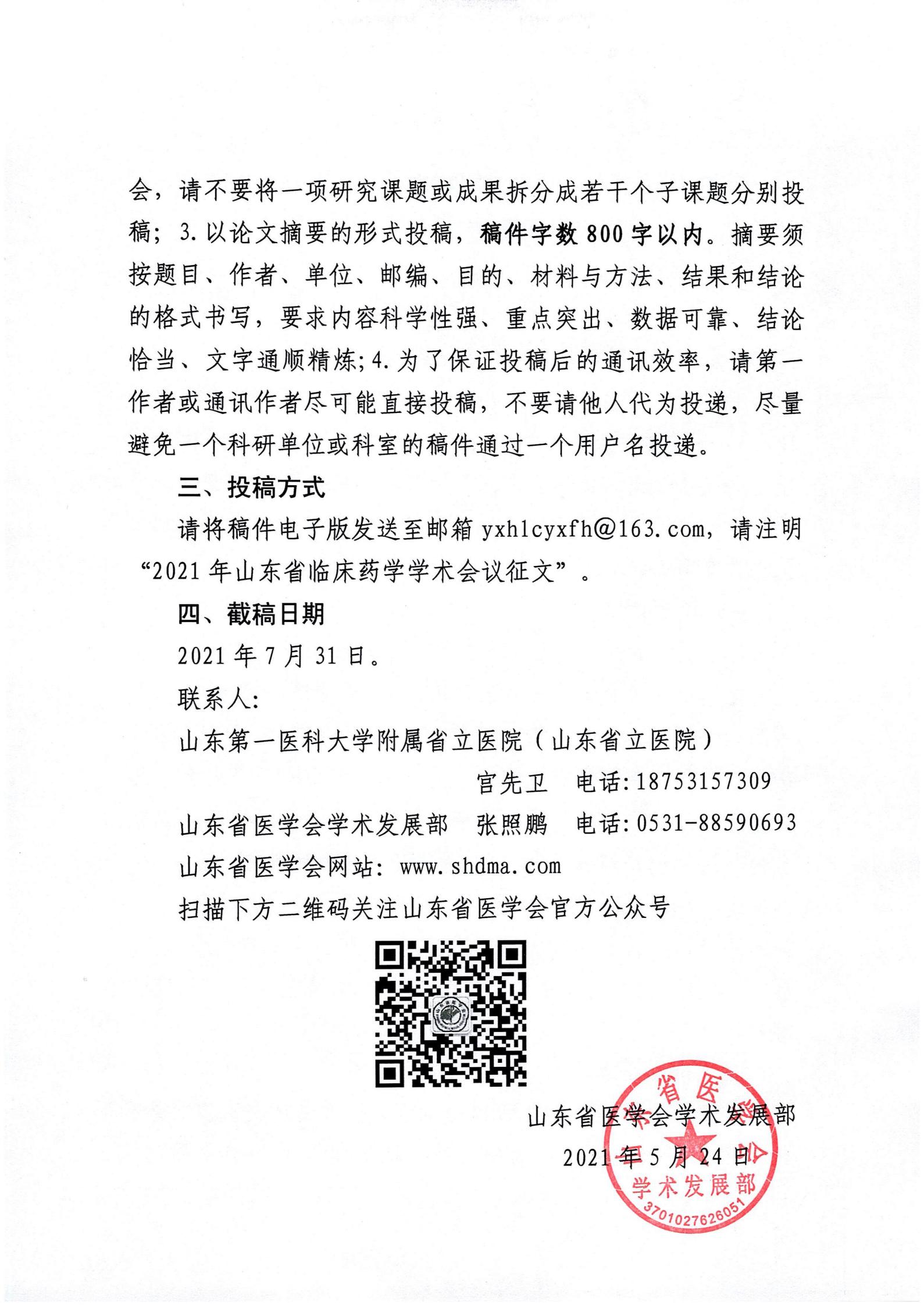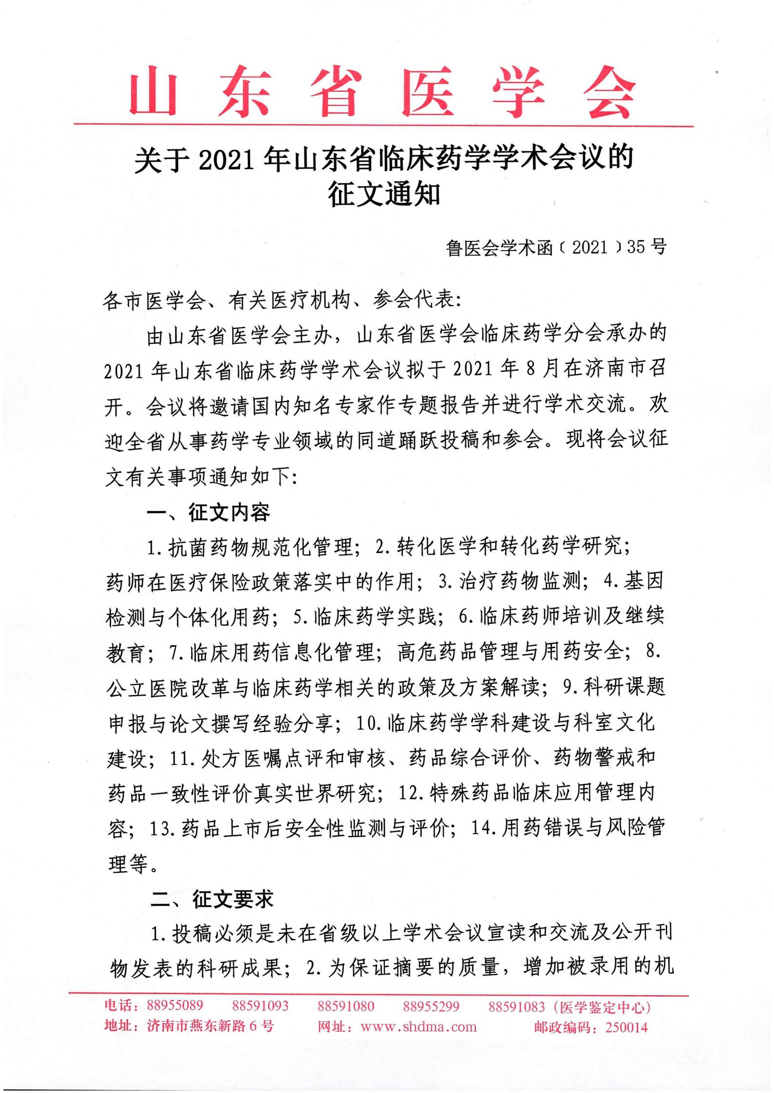 关于2021年山东省临床药学学术会议的征文通知