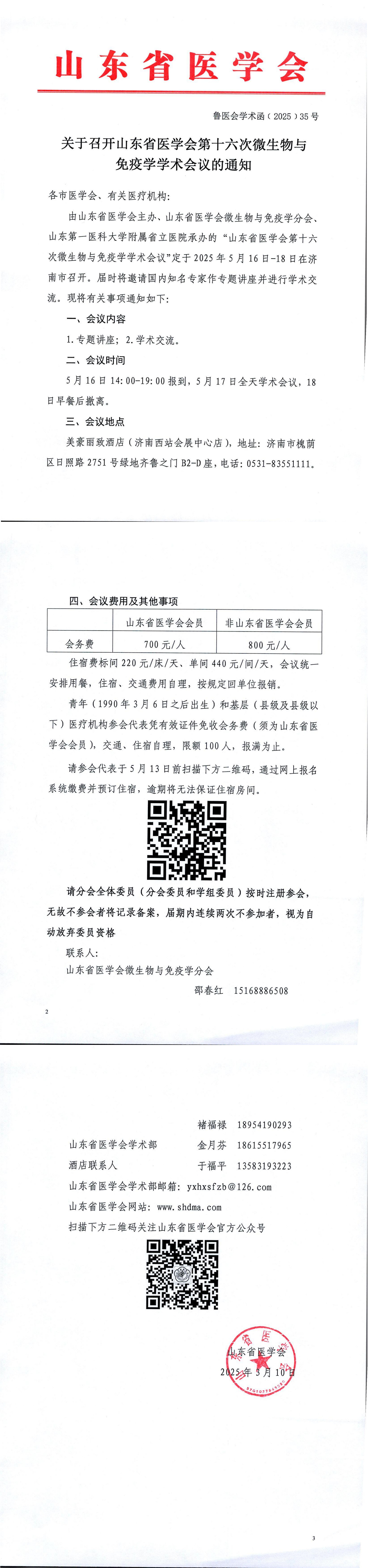 关于召开山东省医学会第十六次微生物与免疫学学术会议的通知