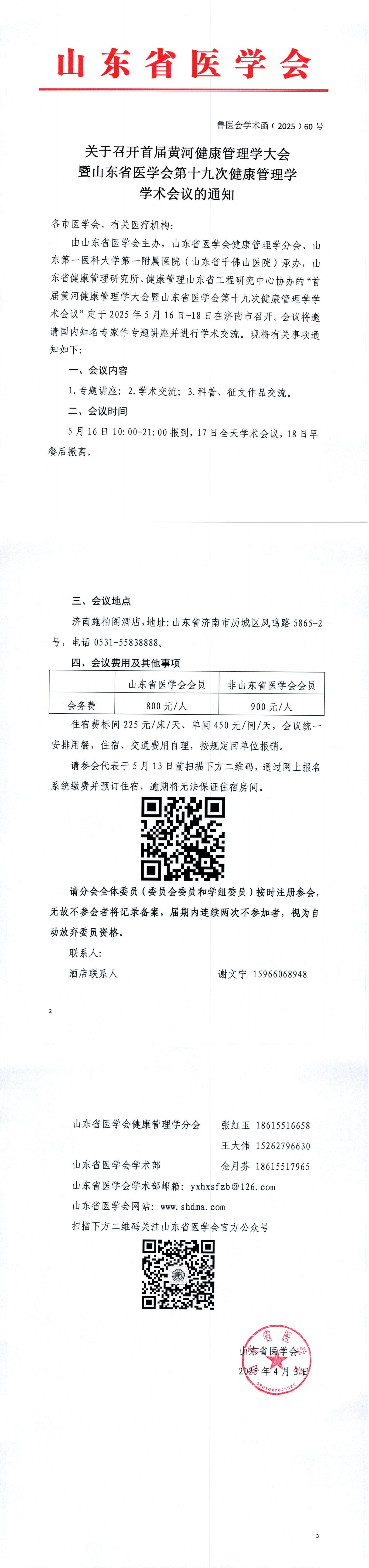 关于召开首届黄河健康管理学大会暨山东省医学会第十九次健康管理学学术会议的通知