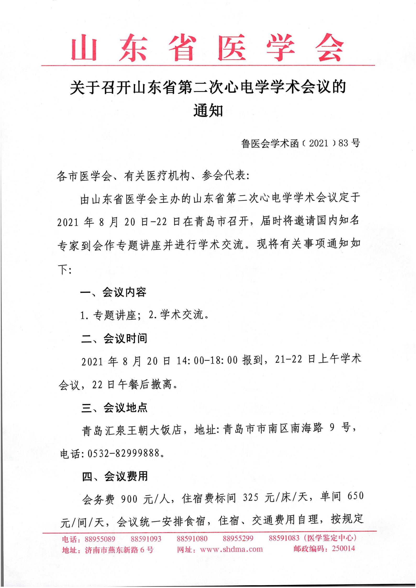 关于召开山东省第二次心电学学术会议的通知