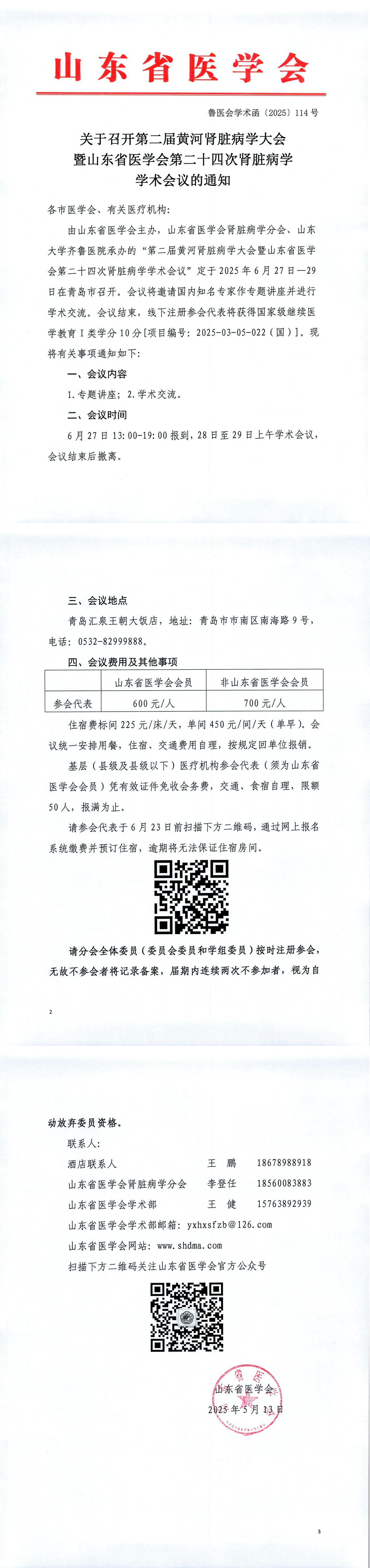 关于召开第二届黄河肾病学大会暨山东省医学会第二十四次肾脏病学学术会议的通知