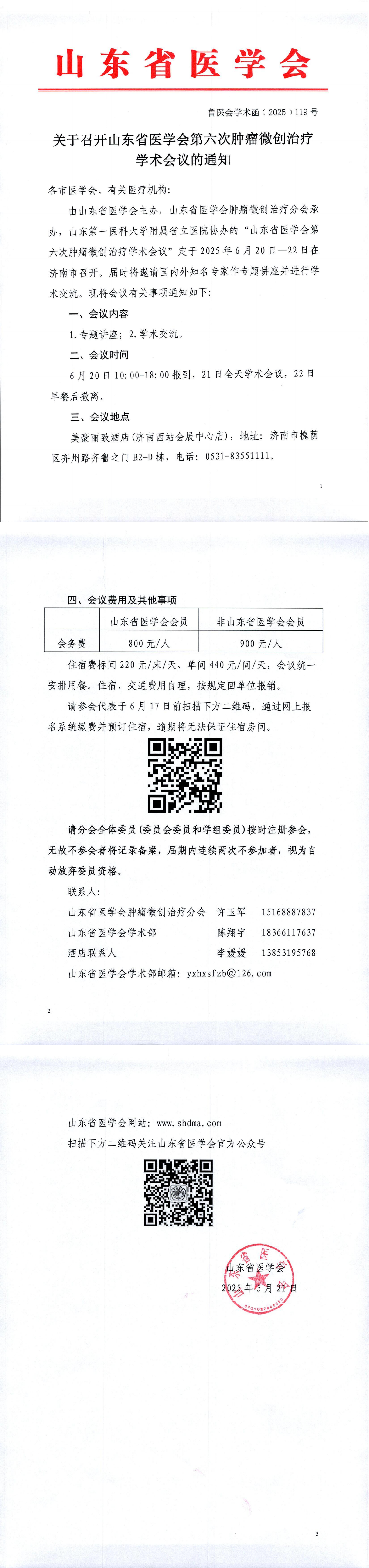 关于召开山东省医学会第六次肿瘤微创治疗学术会议的通知