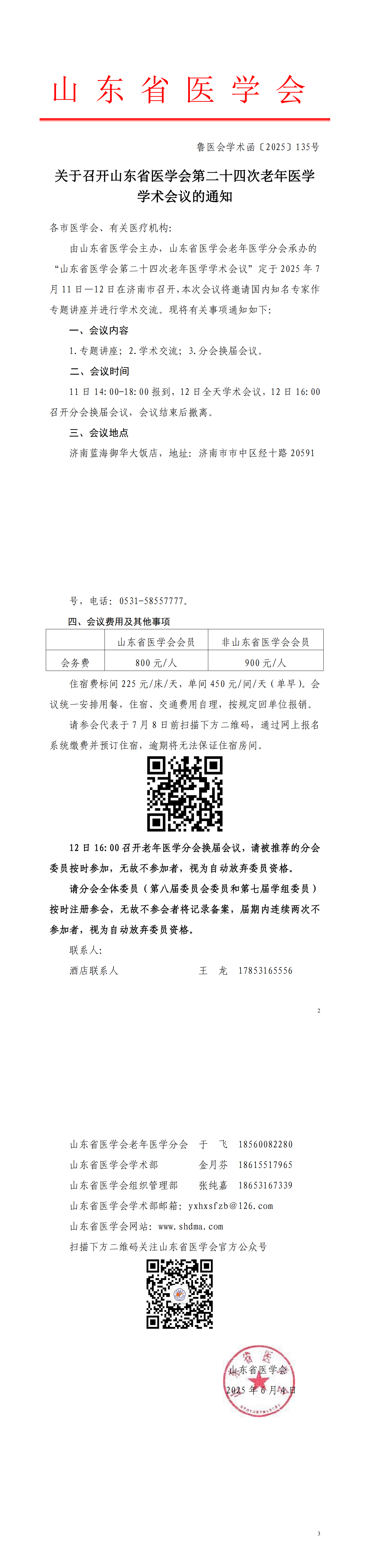 关于召开山东省医学会第二十四次老年医学学术会议的通知