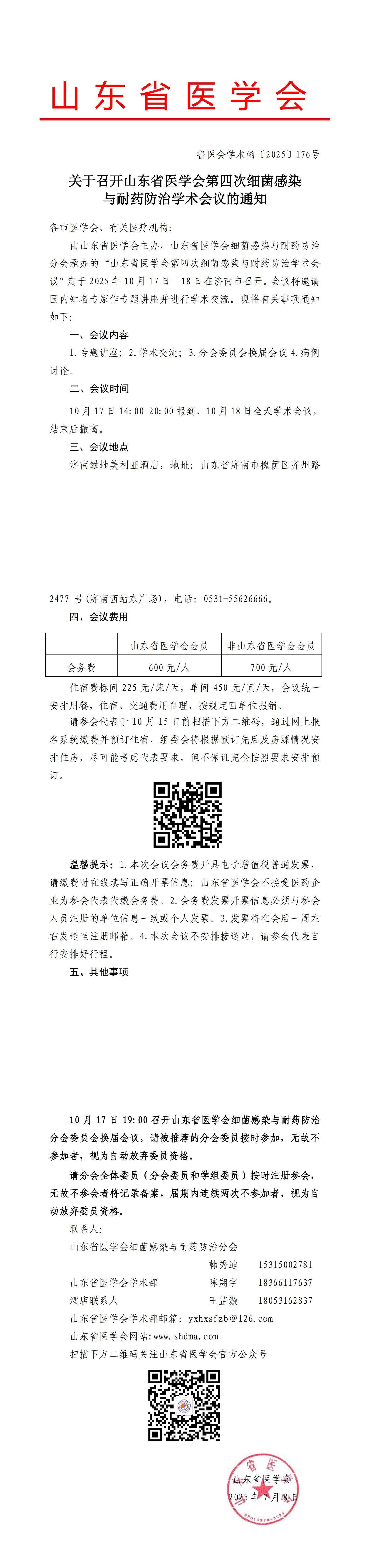 关于召开山东省医学会第四次细菌感染与耐药防治学术会议的通知