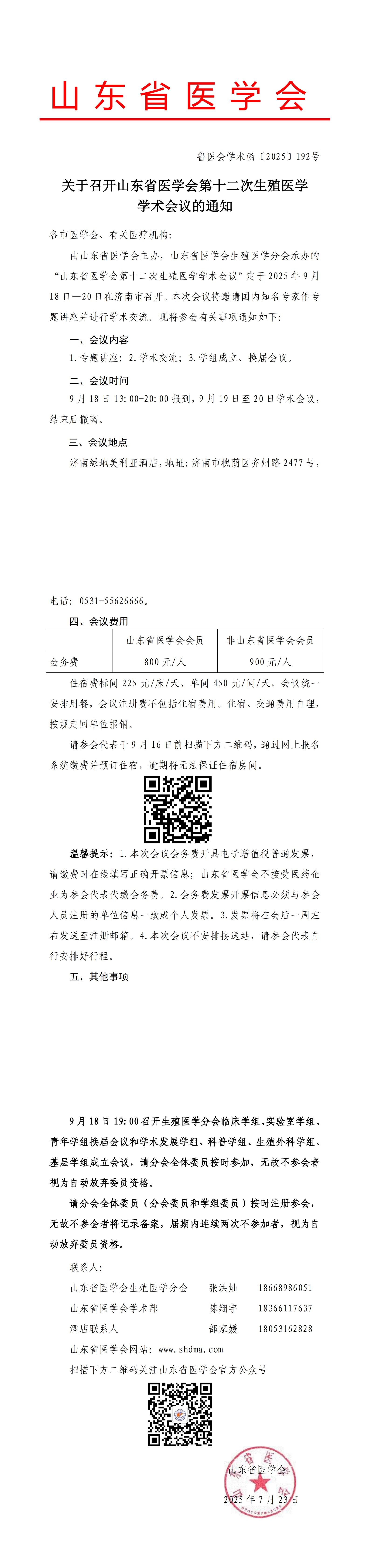 关于召开山东省医学会第十二次生殖医学学术会议的通知