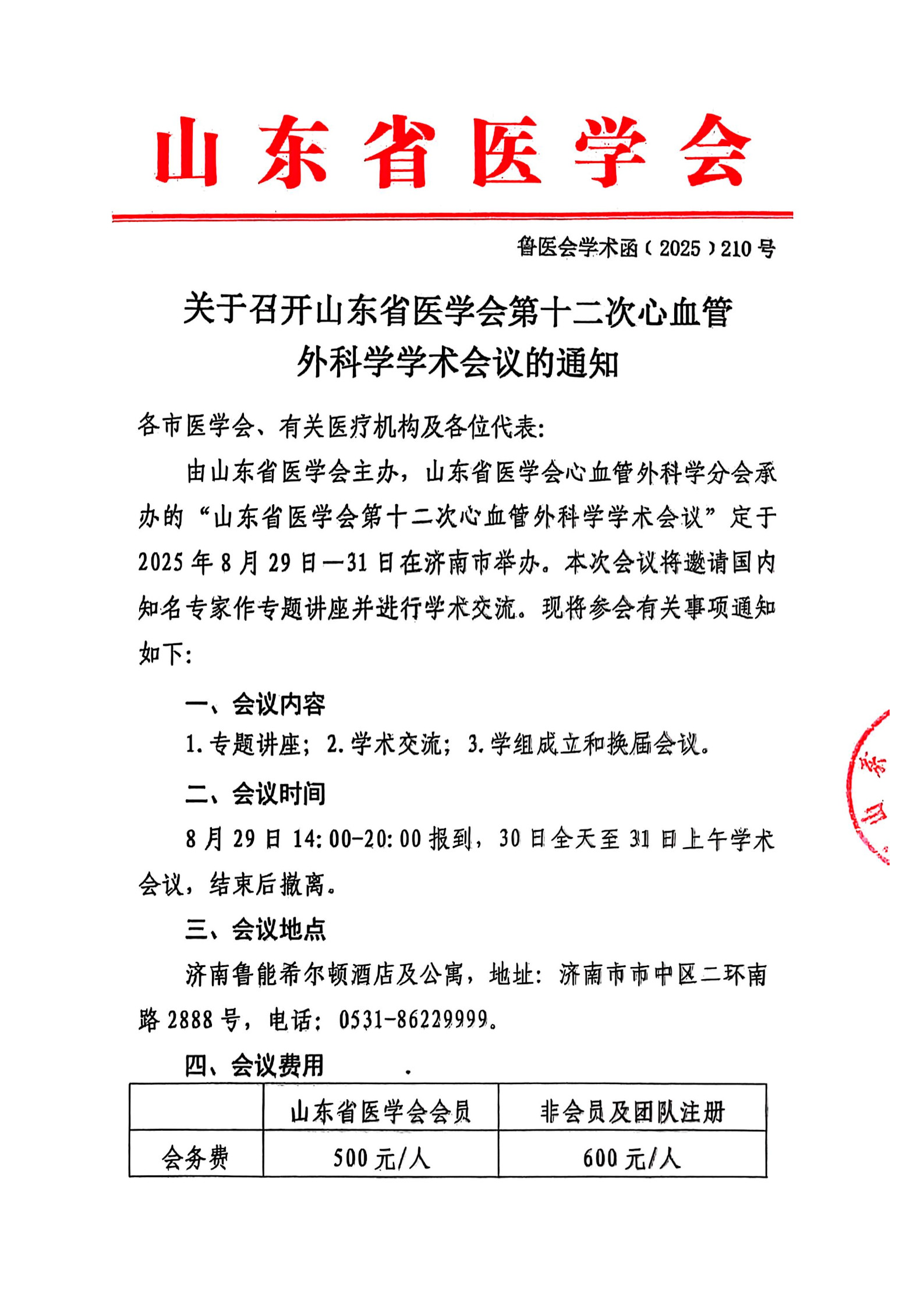 关于召开山东省医学会第十二次心血管外科学学术会议的通知