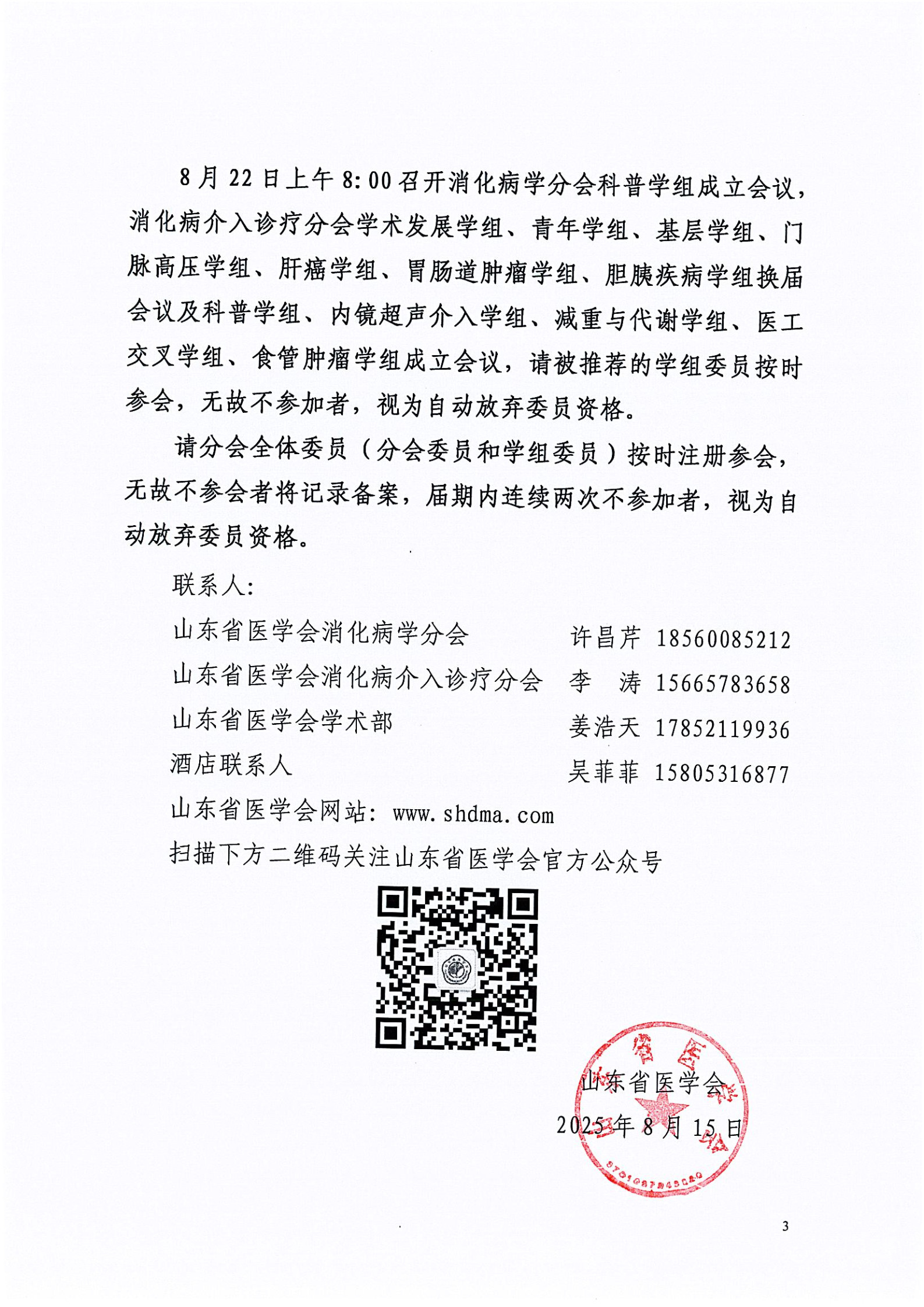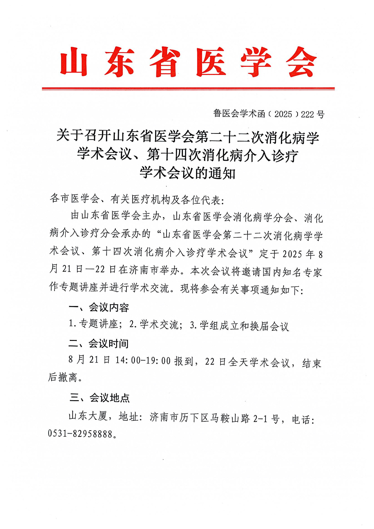 关于召开山东省医学会第二十二次消化病学学术会议、第十四次消化病介入诊疗学术会议的通知