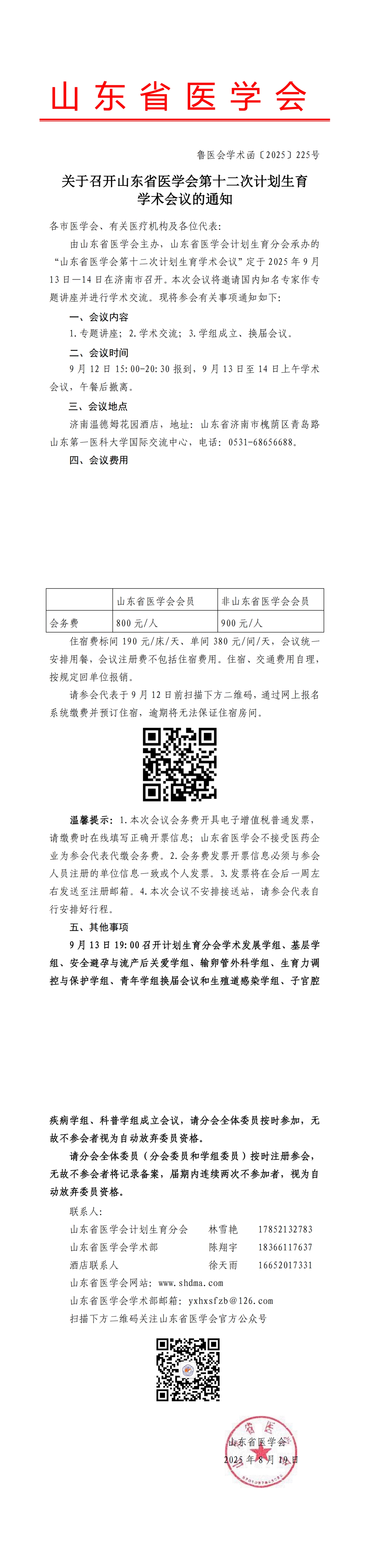 关于召开山东省医学会第十二次计划生育学术会议的通知