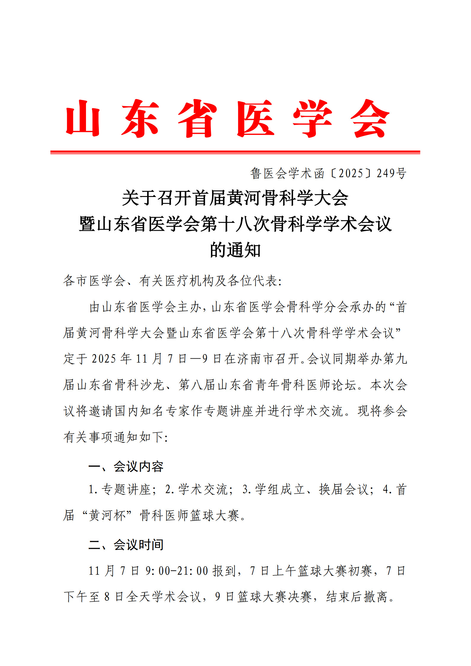 关于召开首届黄河骨科学大会暨山东省医学会第十八次骨科学学术会议的通知
