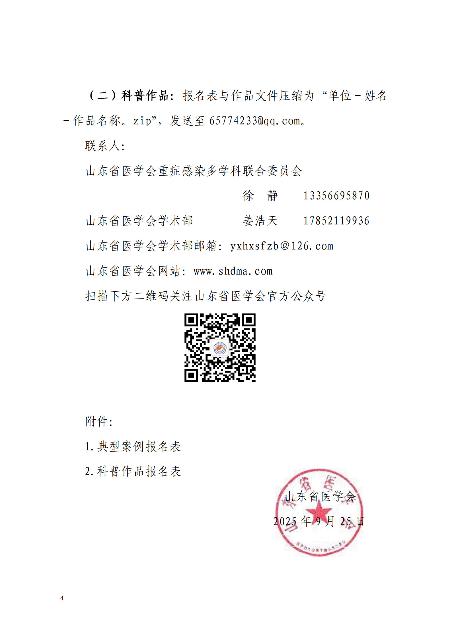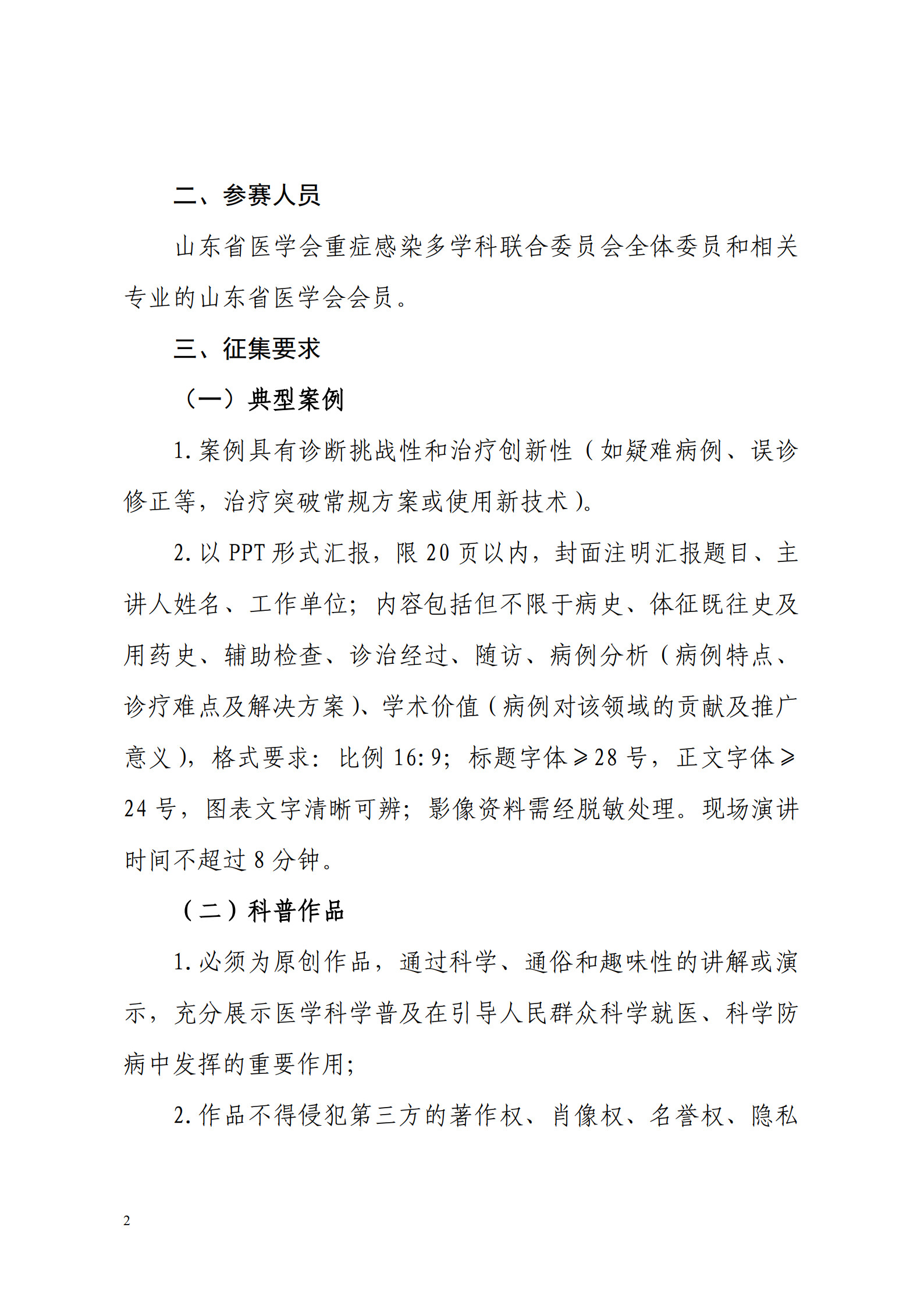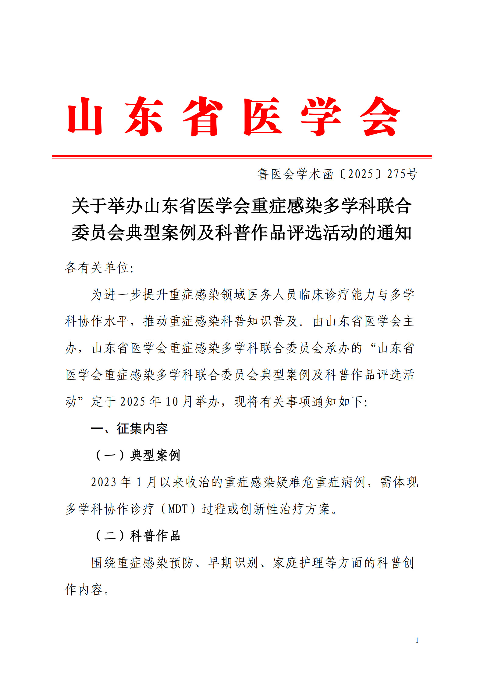 关于举办山东省医学会重症感染多学科联合委员会典型案例及科普作品评选活动的通知