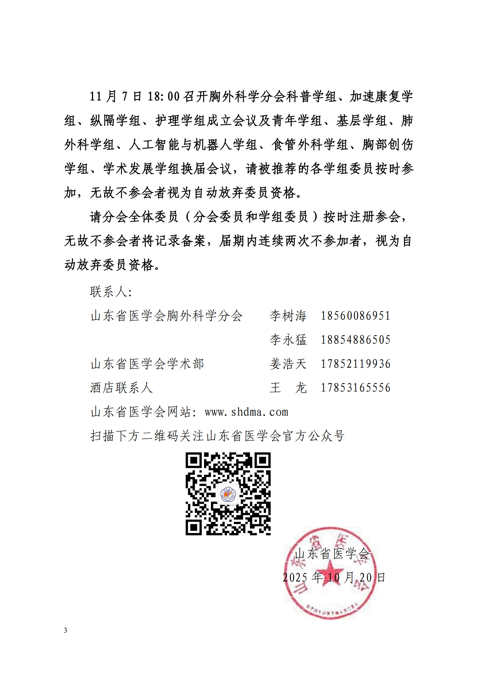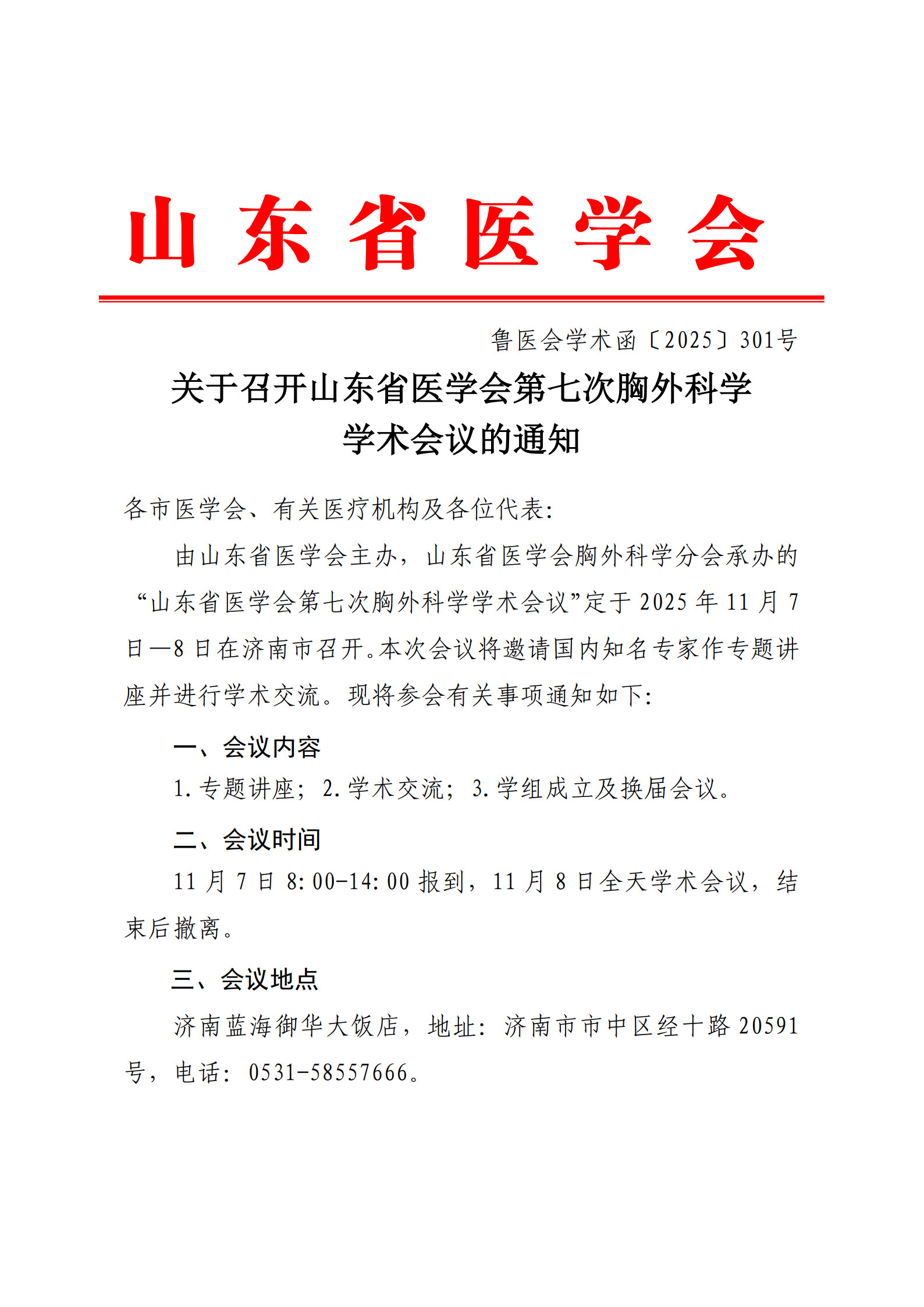 关于召开山东省医学会第七次胸外科学学术会议的通知