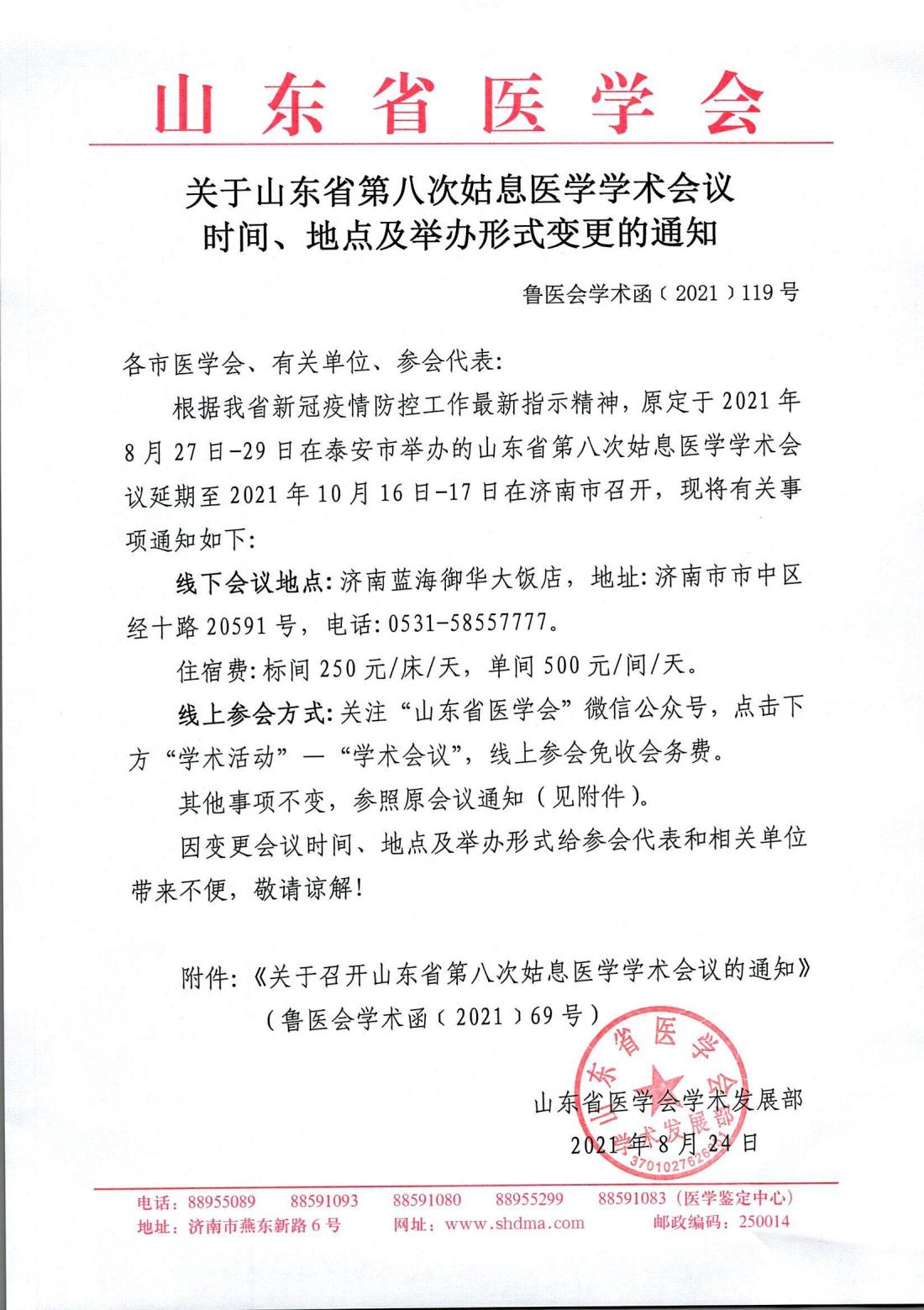 关于山东省第八次姑息医学学术会议时间、地点及举办形式变更的通知