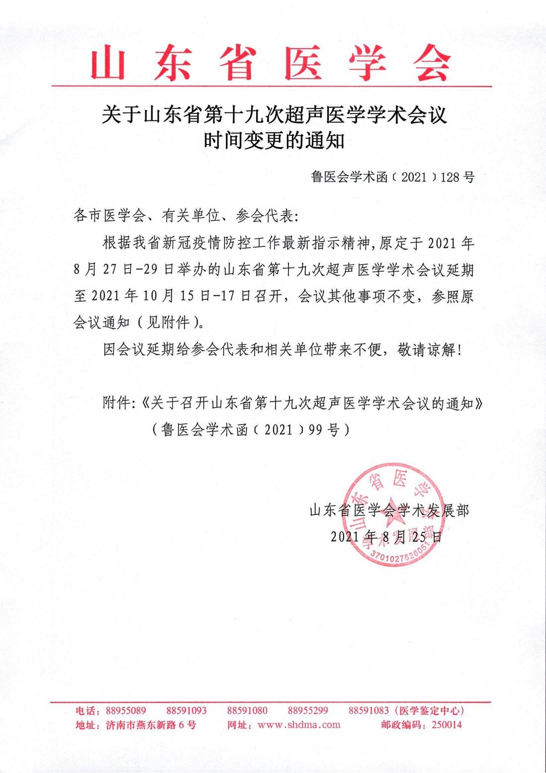 关于山东省第十九次超声医学学术会议时间变更的通知