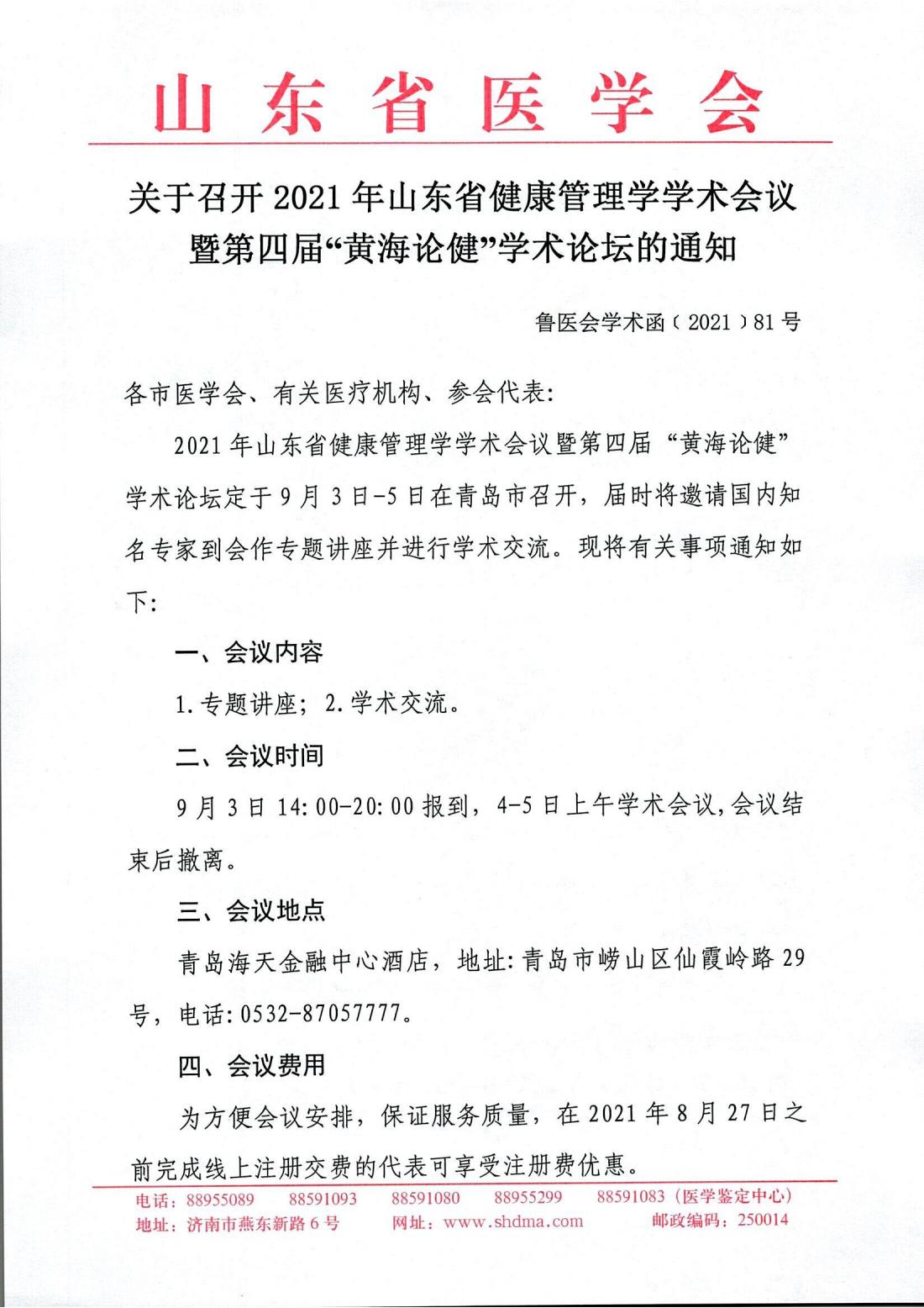 关于召开2021年山东省健康管理学学术会议暨第四届“黄海论健”学术论坛的通知
