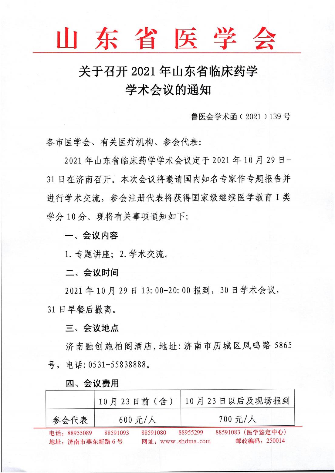 关于召开2021年山东省临床药学学术会议的通知