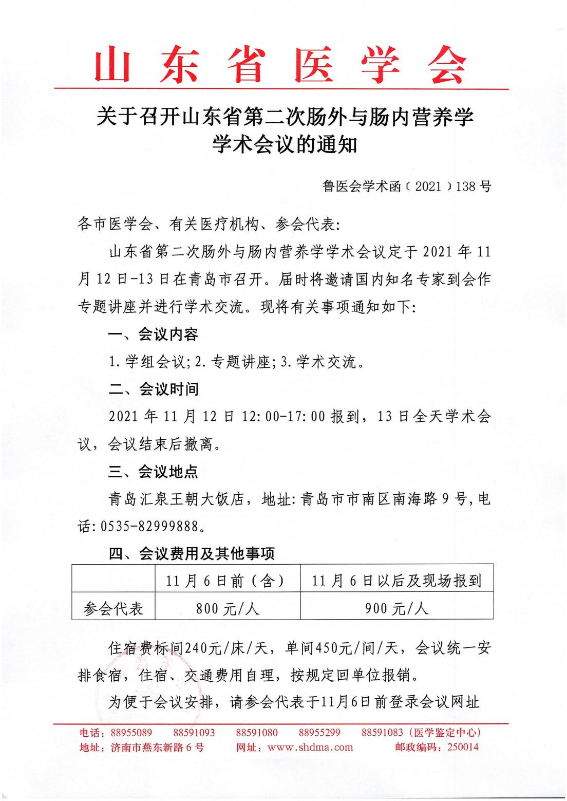 关于召开山东省第二次肠外与肠内营养学学术会议的通知