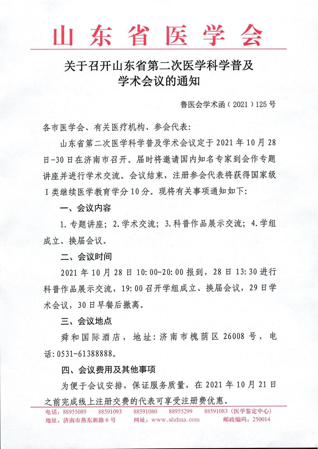 关于召开山东省第二次医学科学普及学术会议的通知