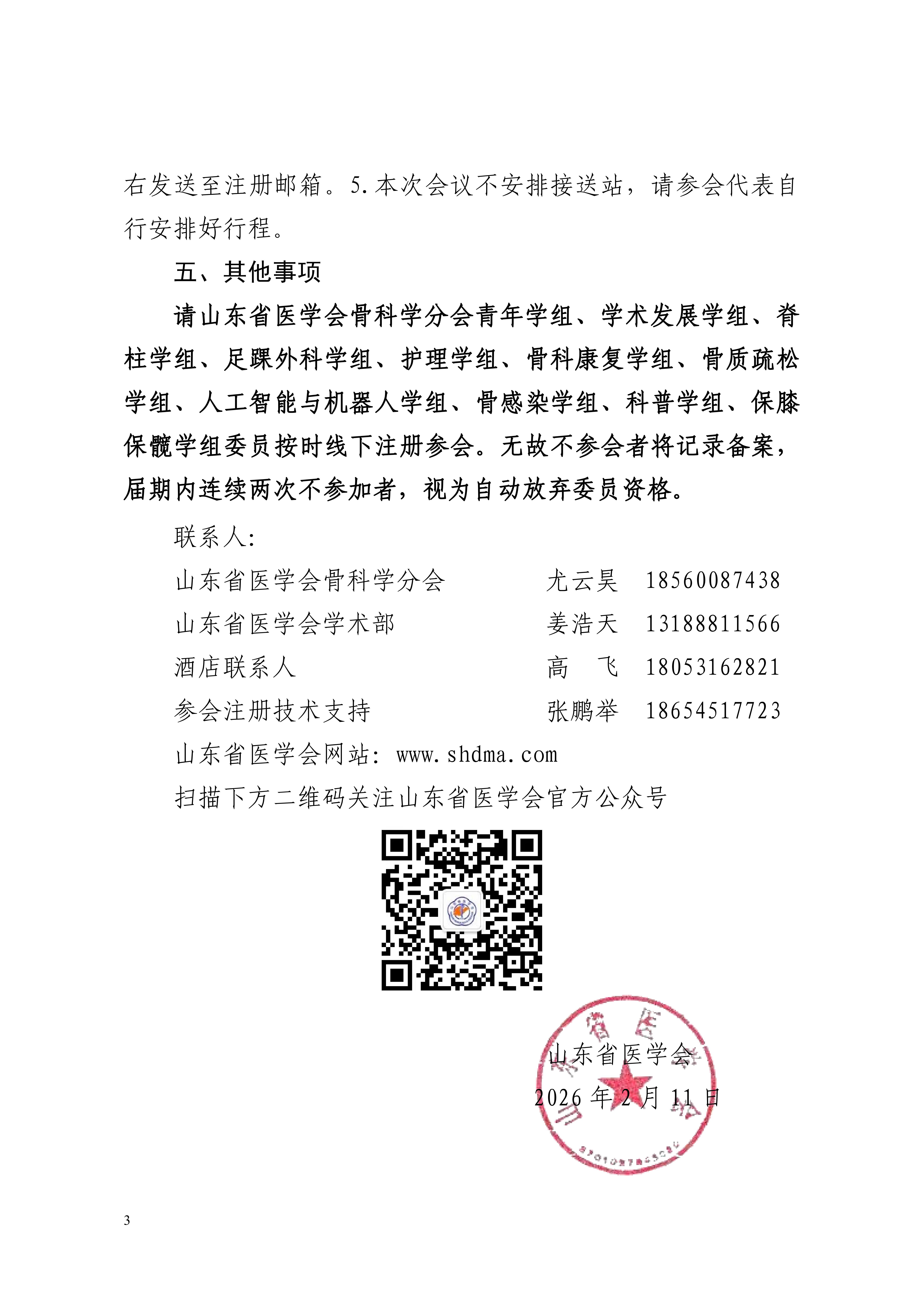 关于召开山东省医学会2026年骨科学分会青年学组、学术发展学组、脊柱学组、足踝外科学组、护理学组、骨科康复学组、骨质疏松学组、人工智能与机器人学组、骨感染学组、科普学组、保膝保髋学组学术会议暨第三届齐鲁骨科高峰论坛的通知