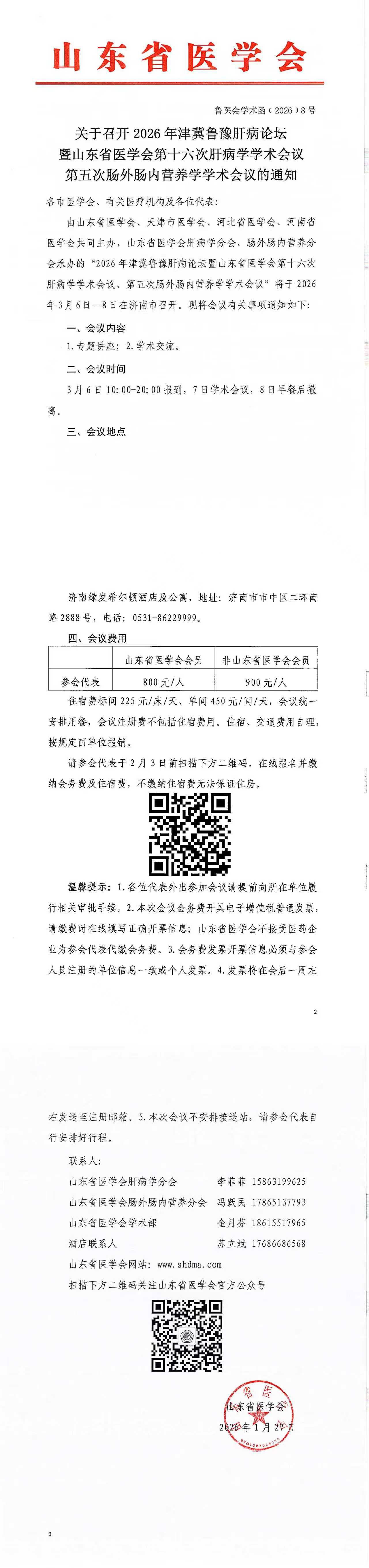 关于召开2026年津冀鲁豫肝病论坛暨山东省医学会第十六次肝病学学术会议第五次肠外肠内营养学学术会议的通知
