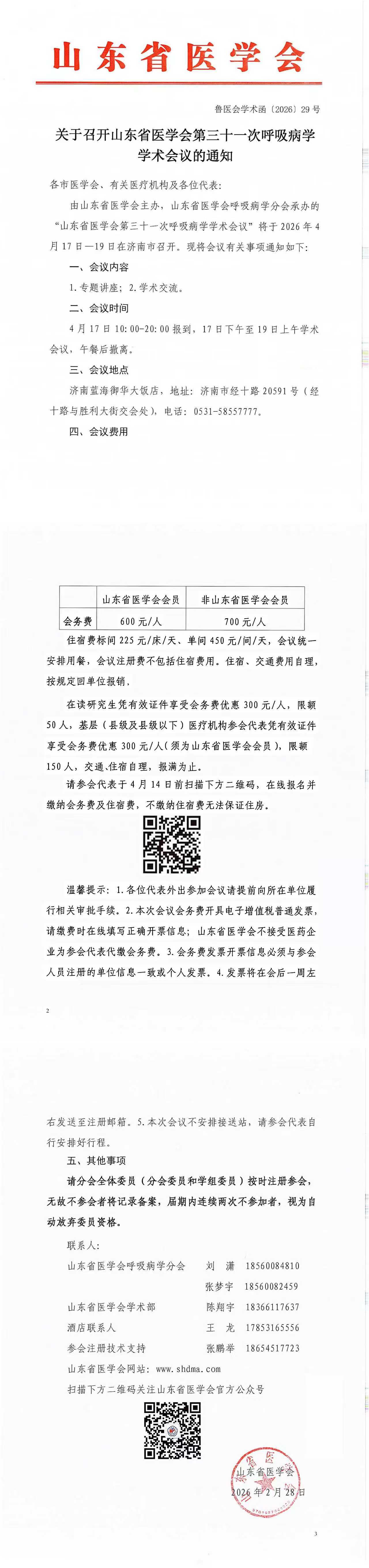 关于召开山东省医学会第三十一次呼吸病学学术会议的通知