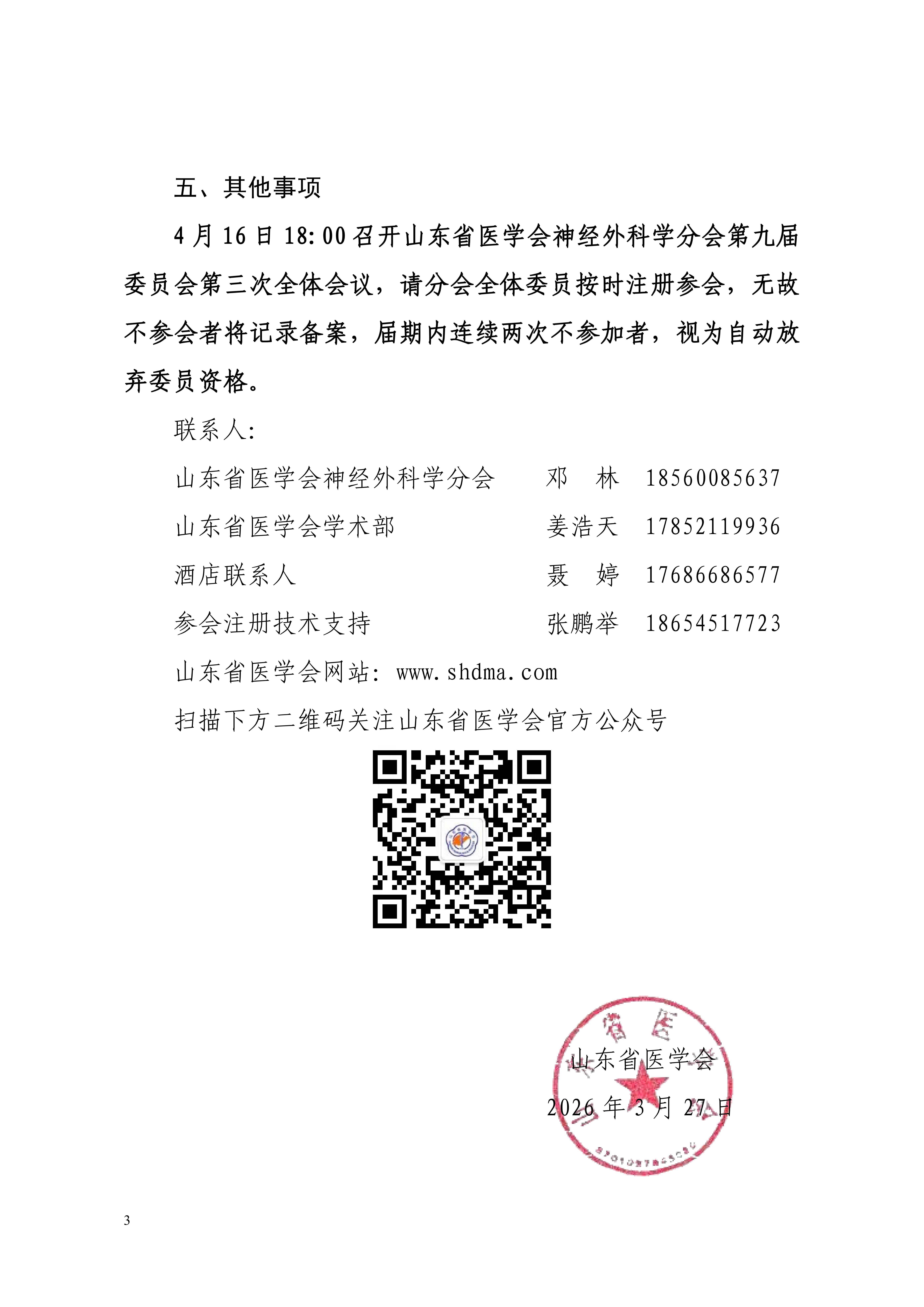 关于召开山东省医学会第十九次神经外科学学术会议暨2026齐鲁神经外科学术论坛的通知