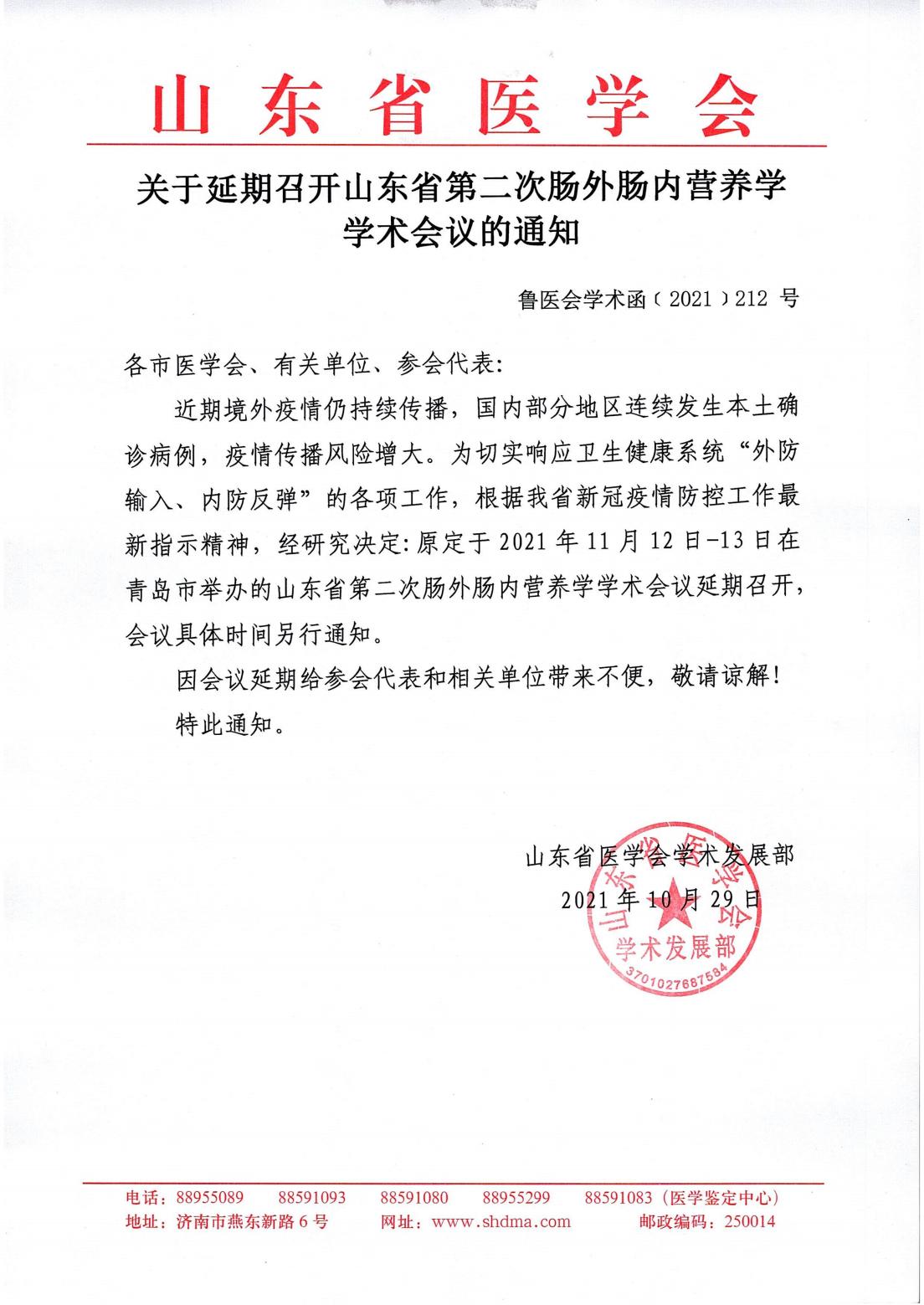 关于延期召开山东省第二次肠外肠内营养学学术会议的通知